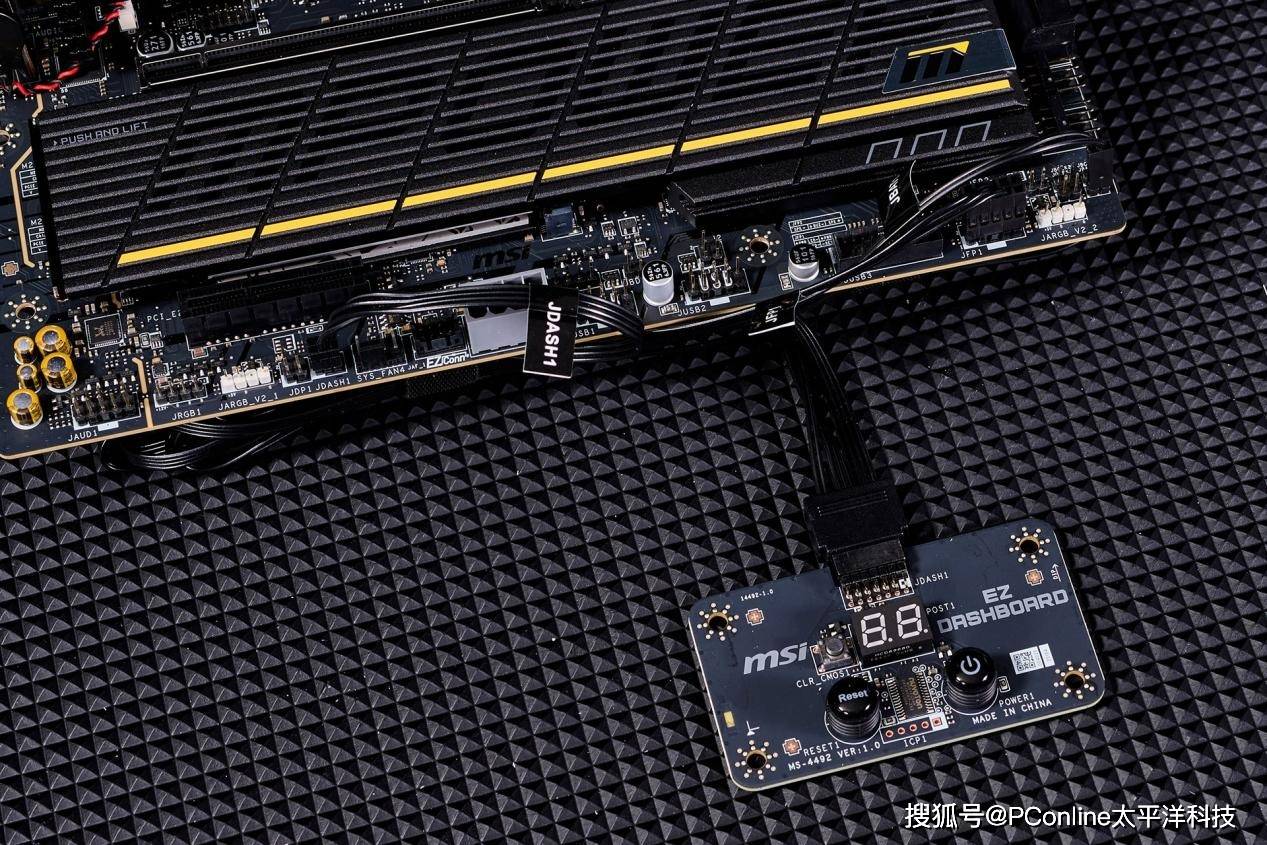 特别值得一提的是附赠的EZ DASHBOARD控制面板,直接把开关、重启、DEBUG灯,以及清除BIOS按键都扩展出来,方便玩家们进行操作。同时若想有更好的视觉效果,可以到某鱼上购买EZ DASHBOARD定制的3D打印件。