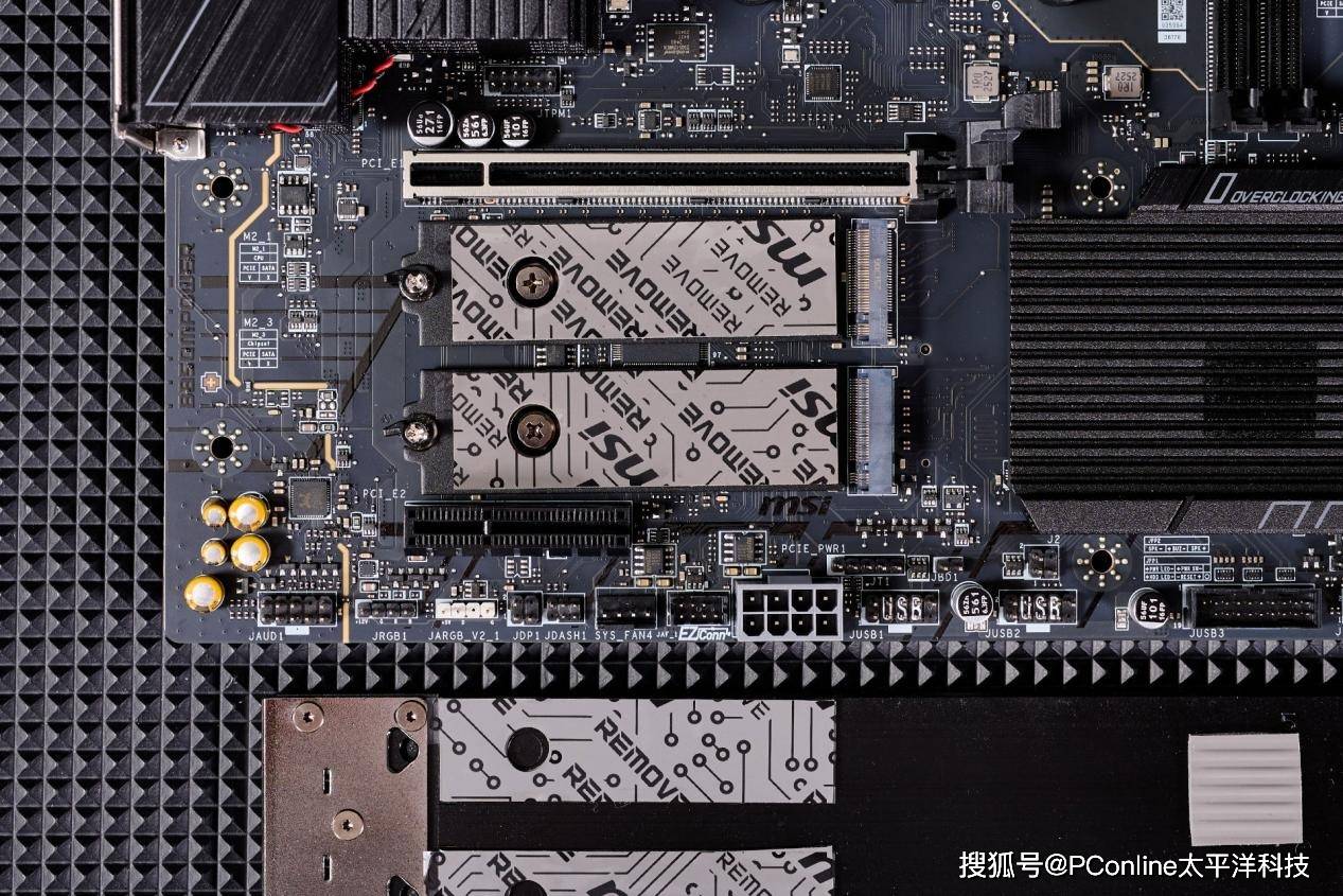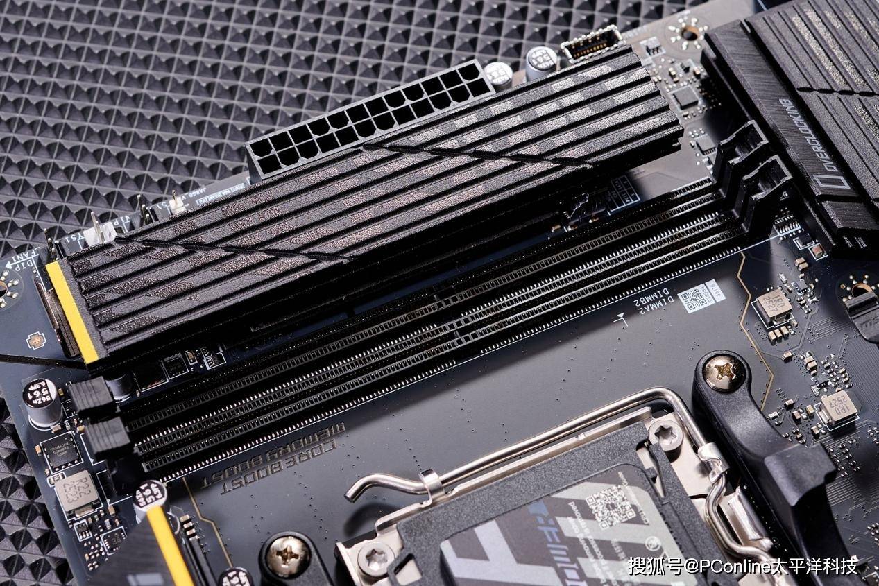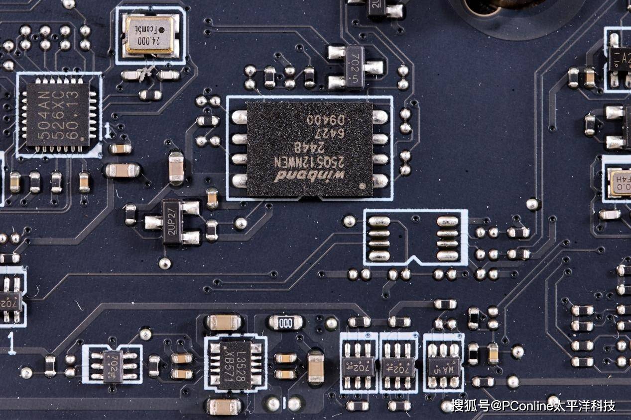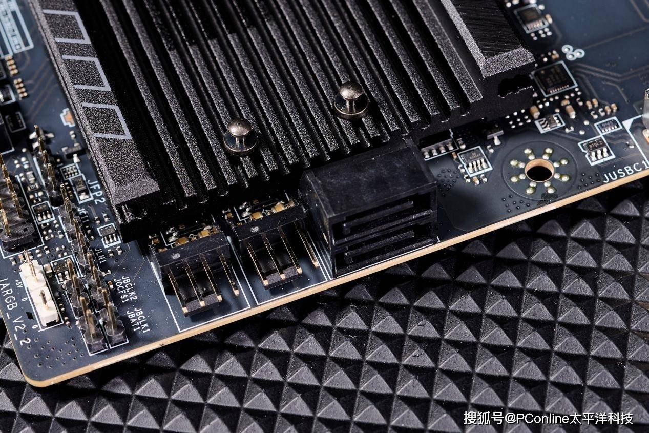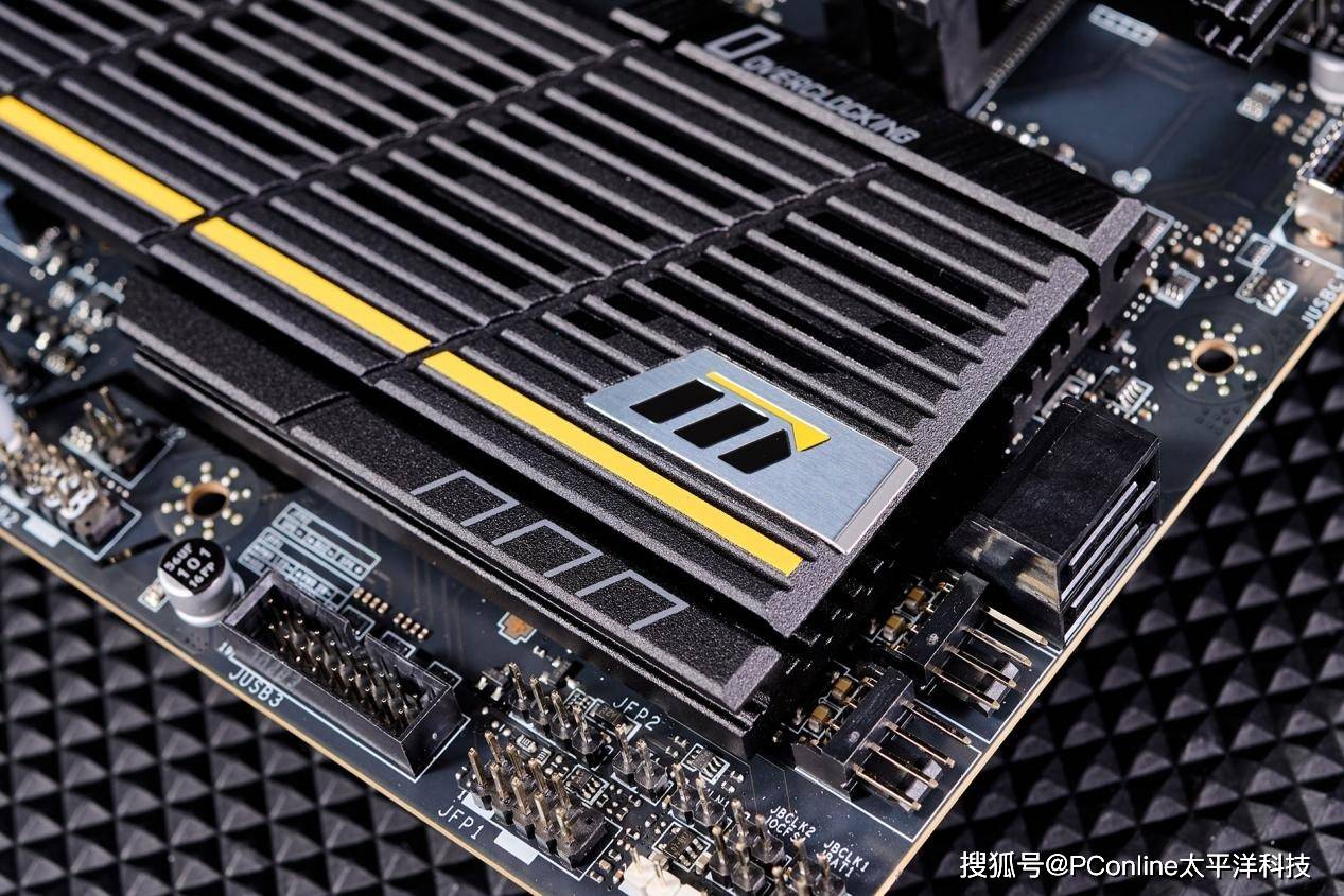 主板顶部同样散热装甲则采用拉丝工艺处理,可惜两个散热装甲之间未利用热管做连接,某程度上影响热传导效率。