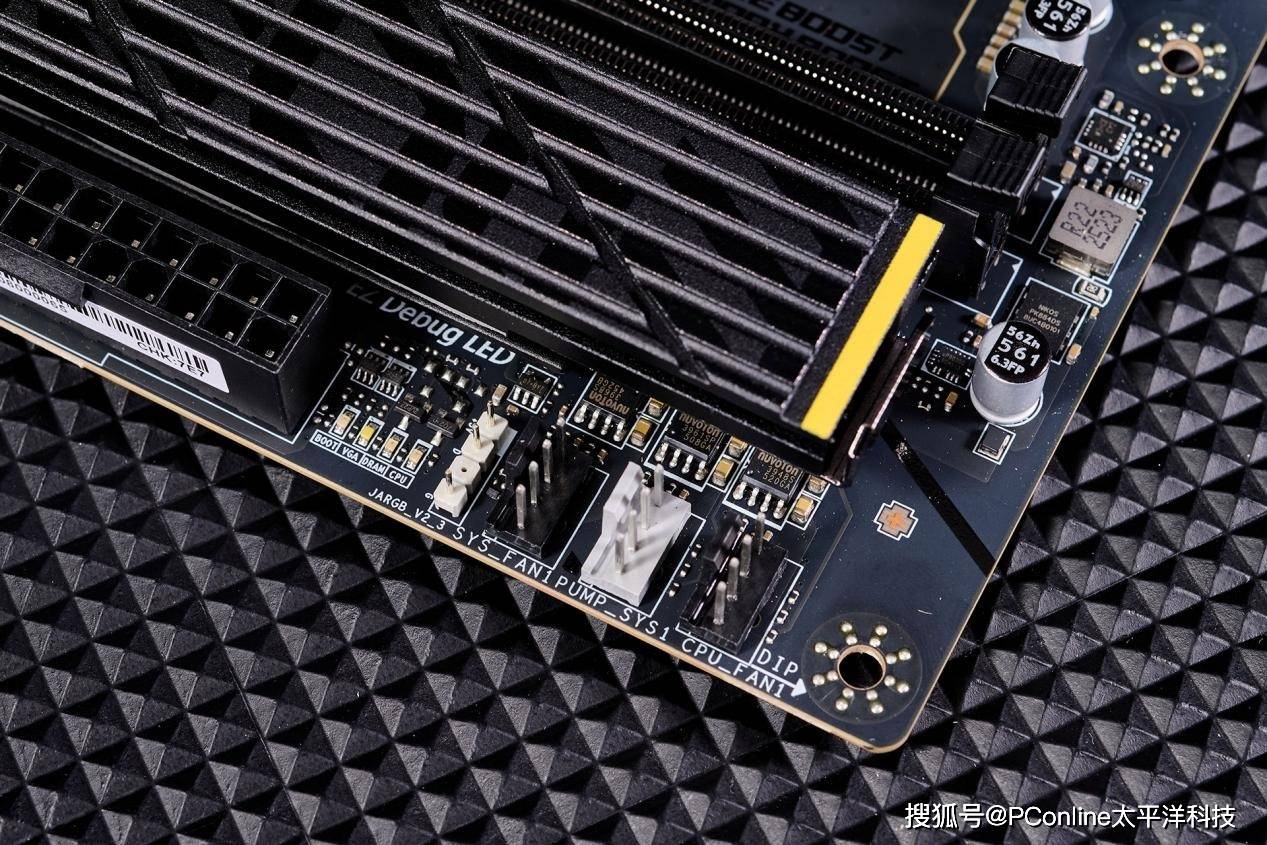 M.2_2插槽旁边是三组清晰标注4Pin PWM风扇接口与一组ARGB接口,方便用户接入散热设备与ARGB灯效设备。同时还配上了EZ Debug LED灯,直观显示硬件状态。