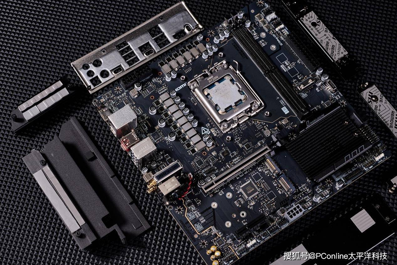 别看这块主板体积小巧,实际上其设计极为紧凑,配备了双DDR5插槽、12+2+1供电、4个M.2插槽以及2个PCIe插槽。