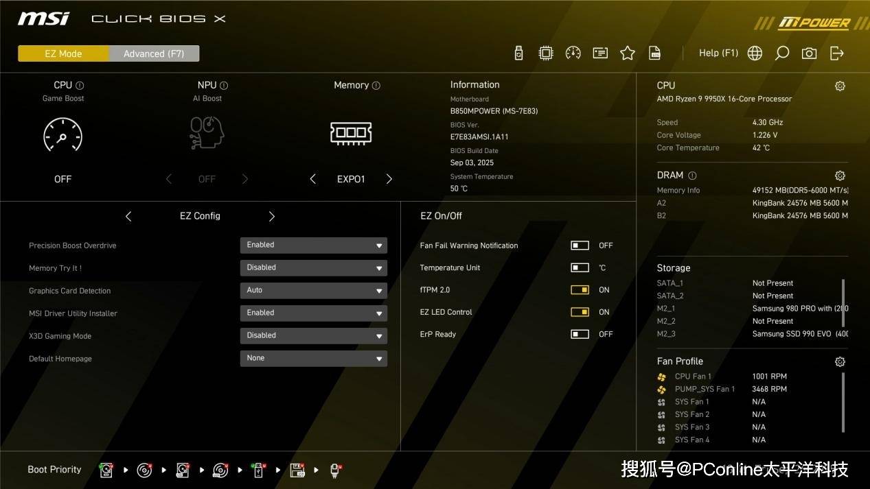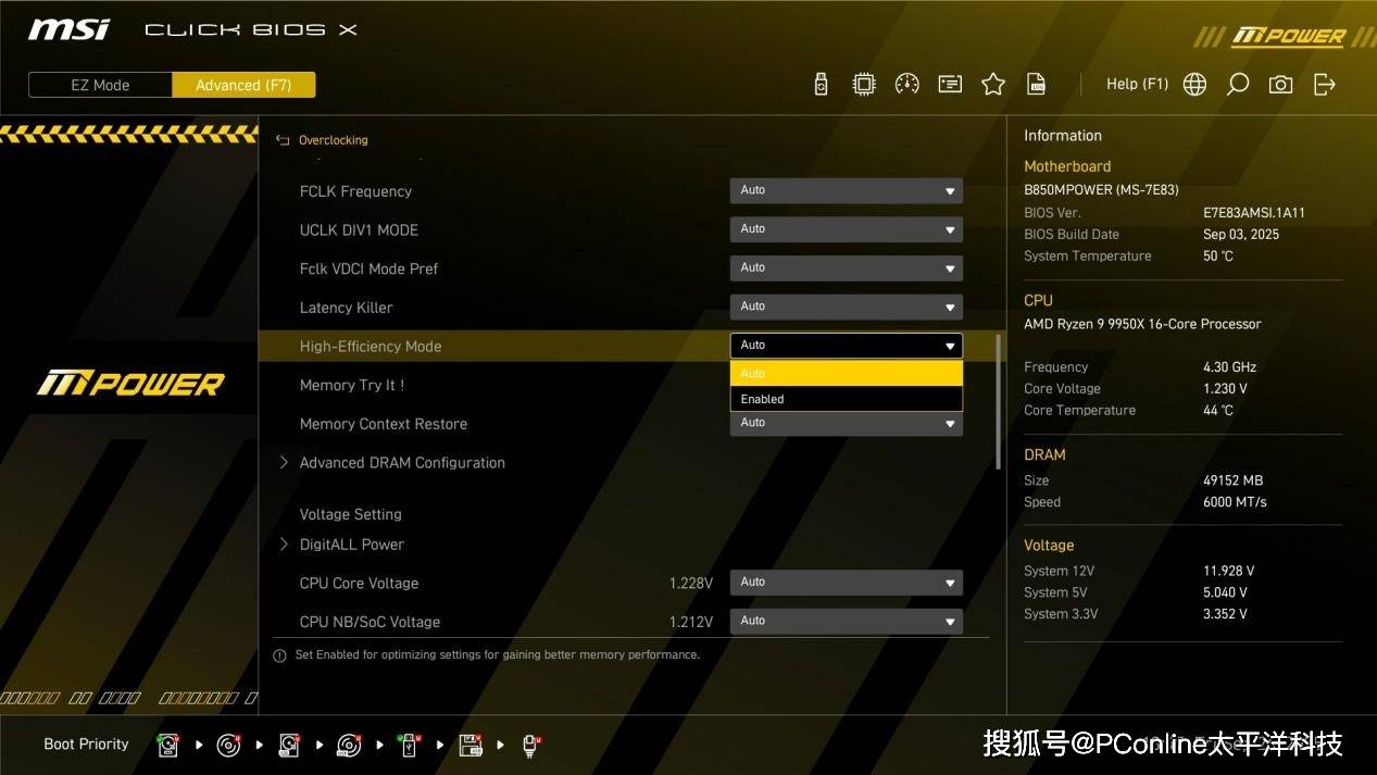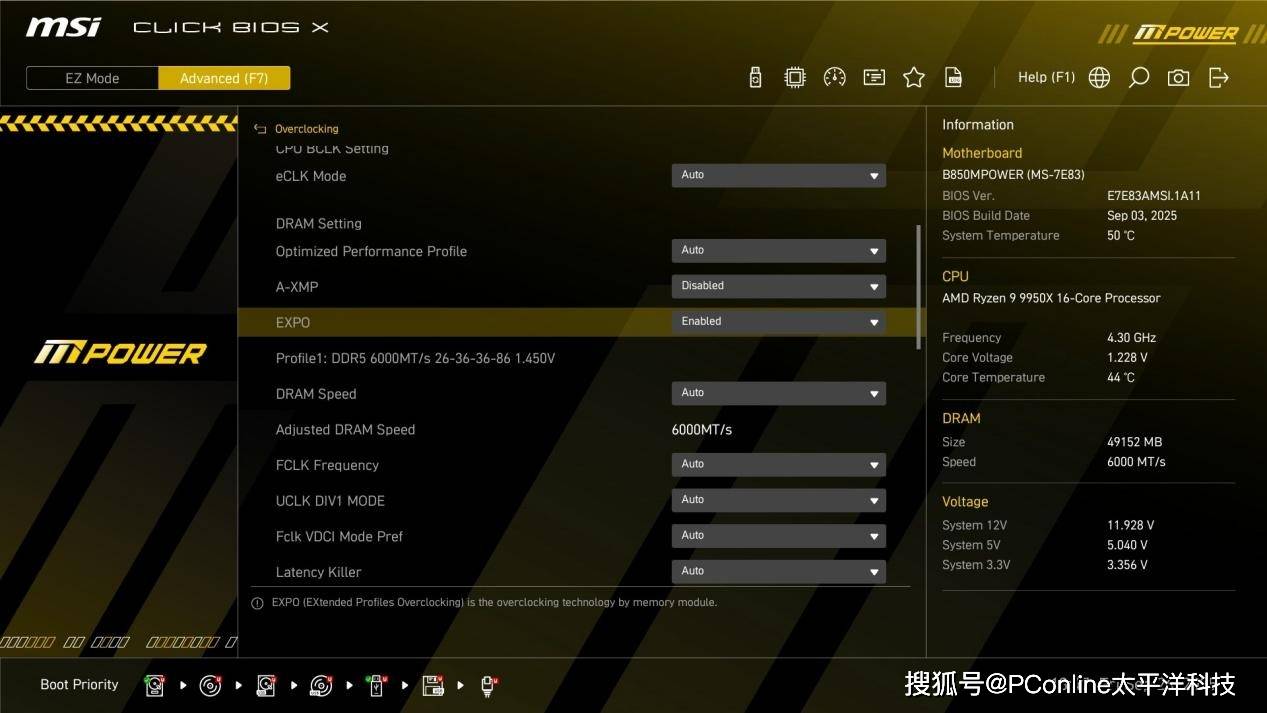 微星为微星B850MPOWER主板配套了MPOWER最新的CLICK BIOS X界面,布局简洁直观,关键设置一目了然。包括了CPU PBO设置、CPU X3D设置、内存EXOP超频设置,以及风扇控制、电压调节和安全启动等实用功能。