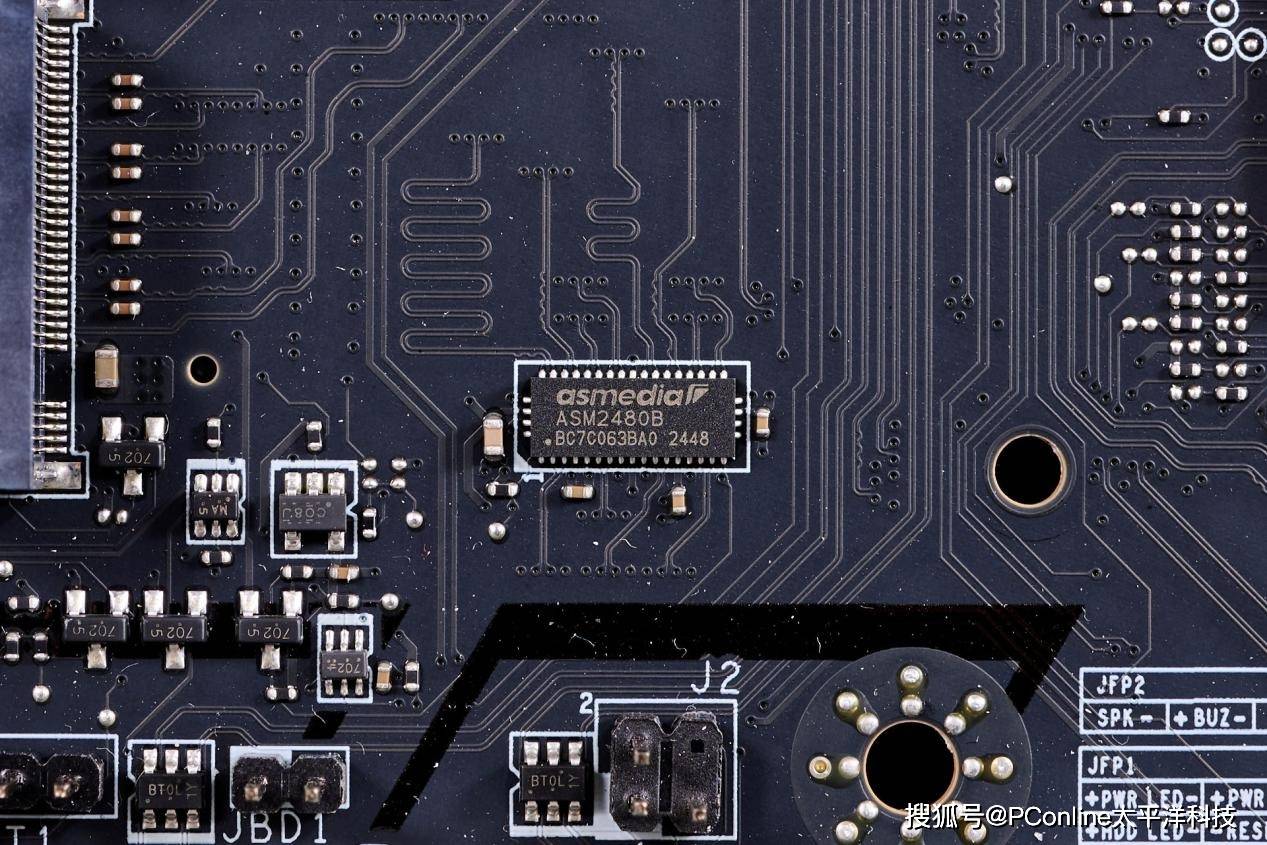 Asmedia ASM2480B PCIe 4.0被动交换芯片,负责PEI_E2与M.2_4之间的PCIe信号分配