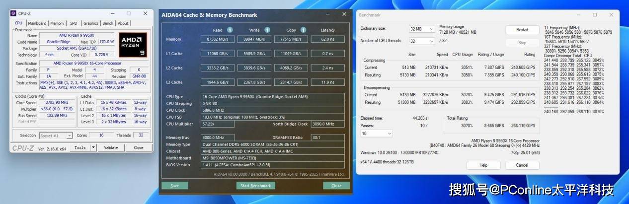 除了内存超频之外,我们还测试了外频超频,对比一下之前的性能,处理器外频来到103MHz之后,性能提升还是可以的。当然笔者不太建议大家利用锐龙9 9950X处理器进行外频超频,因其对系统稳定性影响较大,且对散热要求极为严苛,稍有不慎便可能导致宕机或数据错误。相较之下,合理搭配EXPO与精准的PBO调校更能兼顾性能释放与长期使用可靠性。