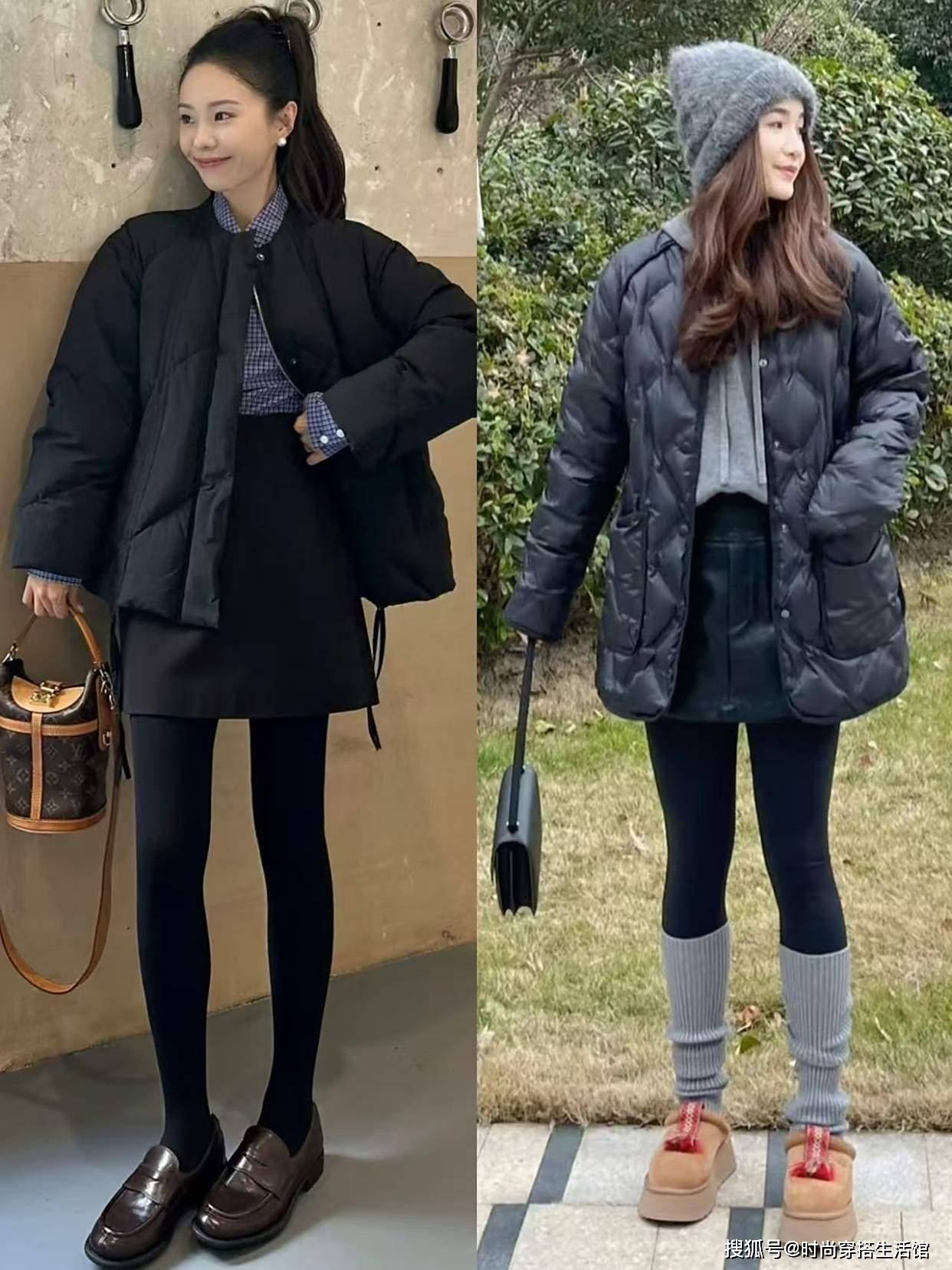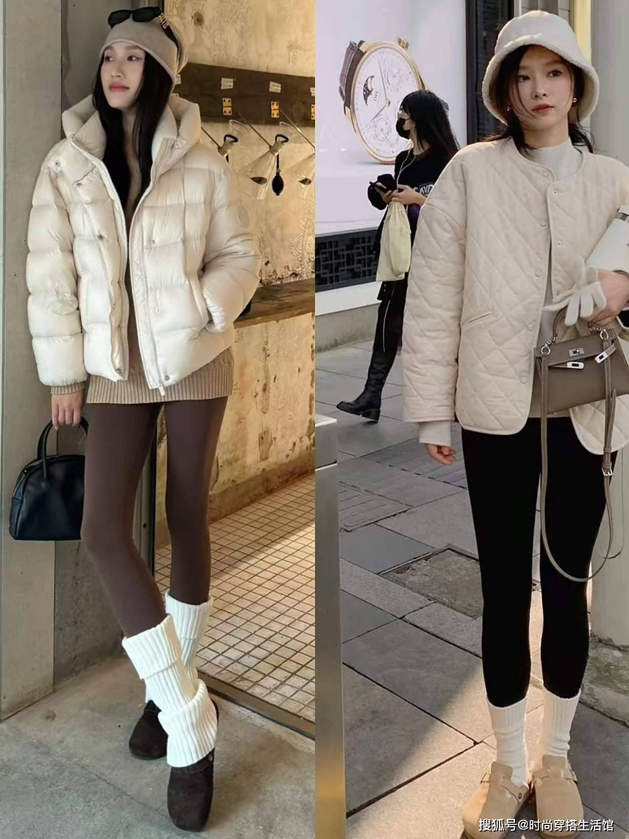 其次看似一件简约百搭的奶奶棉服,秋冬正确的打开方式会有很多种,那么怎么才能将棉服和无痕裤穿出高级感呢?我们除了要利用叠穿凸显层次感之外,还需要注意整个搭配的露肤度,毕竟选择适当的留白除了可以增加轻盈感之外,还可以完美的修饰身材。