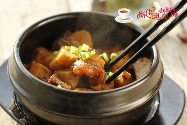 第一种: 温热的食物,霜降后气温下降,天气转寒, 这时不妨食用些温性、热性的食物有助于保暖,来促进血液循环,提高人体的新陈代谢, 有助于驱寒保暖,增强体质,抵御即将到来的寒冬, 如:羊肉、牛肉、鸡肉、生姜、葱、蒜等。推荐一道“牛肉芋头煲”的做法,将牛肉和芋头荤素搭配炖煮在一起,鲜美营养又好吃,特别适合霜降进补。