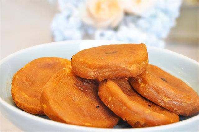 第三种:应季蔬菜和水果:秋季是丰收的季节,霜降前后大量的秋季蔬果的上市, 这时我们要顺应季节的变化,当季的食材营养丰富, 有助于补充维生素、矿物质、膳食纤维等多种营养, 调理好身体顺应应季节变化,如: 梨、柿子、石榴、苹果等水果, 南瓜、萝卜、芋头、红薯、玉米等蔬菜。 新鲜的柿子我们常常是直接生抽,不过也可取它来制作成点心, 也同样很受人们的欢迎,就如同这道“豆沙柿子饼”, 香甜软糯,别有一番滋味。