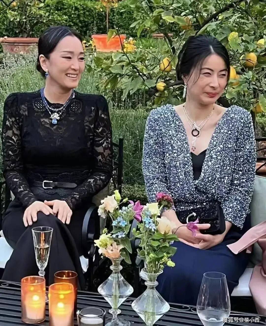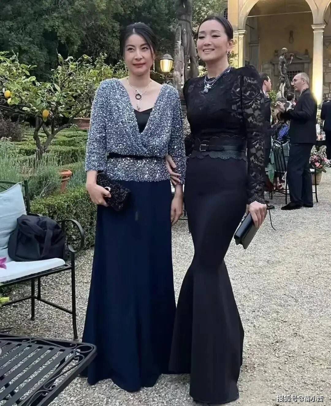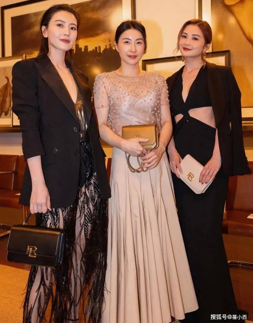 这一身搭配则更加华丽贵气,亮片衫闪闪发光的材质在灯光下格外耀眼,下身搭配一条黑色过膝连衣裙,既端庄又不失时尚感,整体造型简约大气,完美展现了她作为豪门太太的优雅气质。