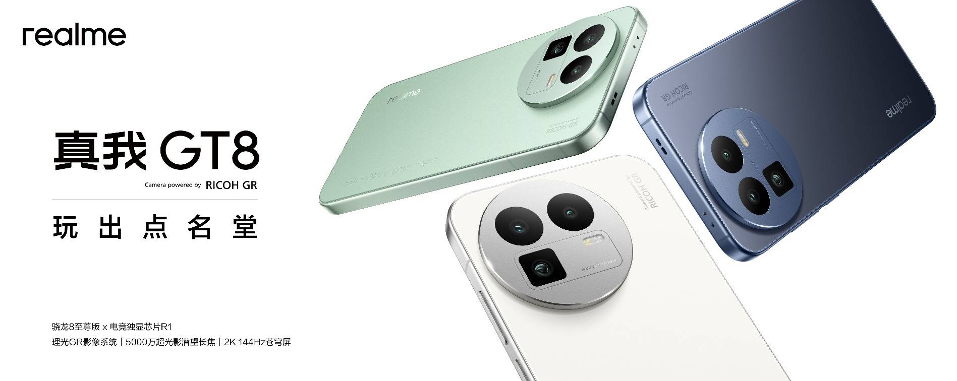 一同亮相的真我GT8,则是定位“最强标准版”。除配备与Pro同款的理光GR影像系统和2K 144Hz苍穹屏外,在性能影像上也带来了越级突破,骁龙8至尊版、电竞独显芯片R1、5000万超光影潜望长焦等配置,将核心的旗舰体验带给更多用户。真我GT8将于10月21日16:40正式开售,起售价2899元。
