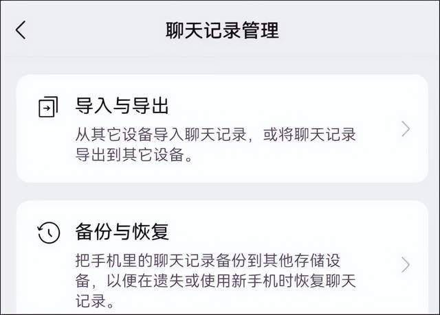 通过“导入与导出”,用户可在设备间转移聊天记录;“备份与恢复”则允许将聊天记录备份到电脑等存储设备。这一改进使得用户能更灵活地管理海量聊天数据,有效为存储空间“减负”。