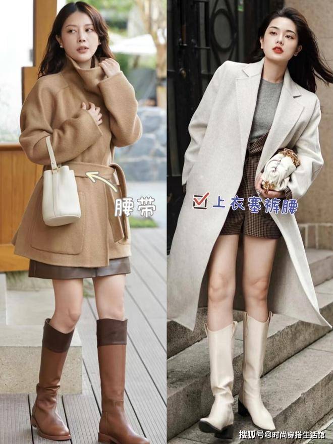 最后我们选择长外套搭配长靴的时候还要塑造出身材比例,毕竟没有腰线的长外套很容易显得横行拉宽身材,视觉上会更加的臃肿和显胖,那么最好的方式就是可以打造出腰线,像是选择腰带设计长外套,敞开穿露出内搭等方式,不仅能够让我们的长外套和长靴的造型彰显出身材曲线,还能完美塑造出身材比例,轻松打造三七分比例,瞬间显高显腿长。