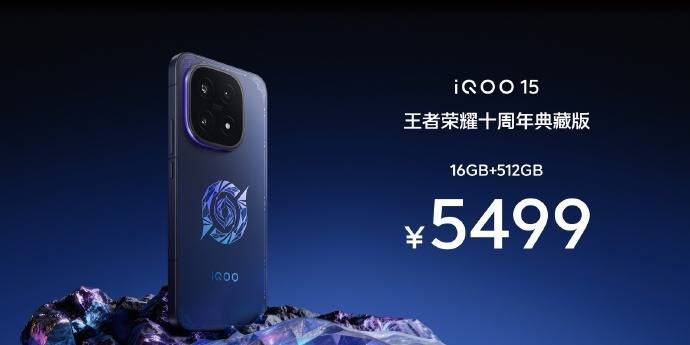 iQOO 15提供五个版本选择:12GB+256GB售价4199元,16GB+256GB售价4499元,12GB+512GB售价4699元,16GB+512GB售价4999元,16GB+1TB售价5499元, 王者荣耀十周年典藏版售价5499元。
