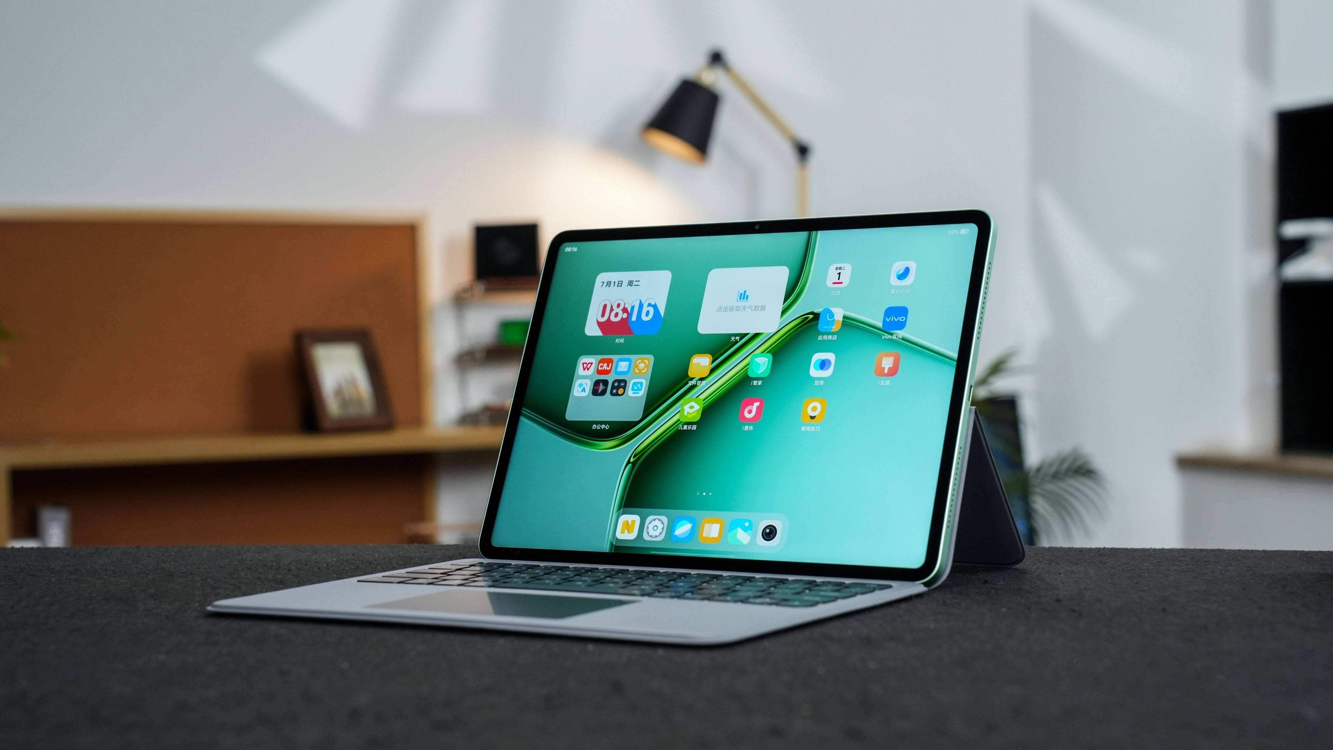 iQOO Pad5e平板则以“极简实用”为设计关键词,584g的轻薄金属机身搭配6.62mm的纤薄厚度,单手握持无压力。曼岛的绿色电光呼应竞速基因,灰晶如冰川陨铁般冷峻,银翼则以冷银质感演绎科技美学。