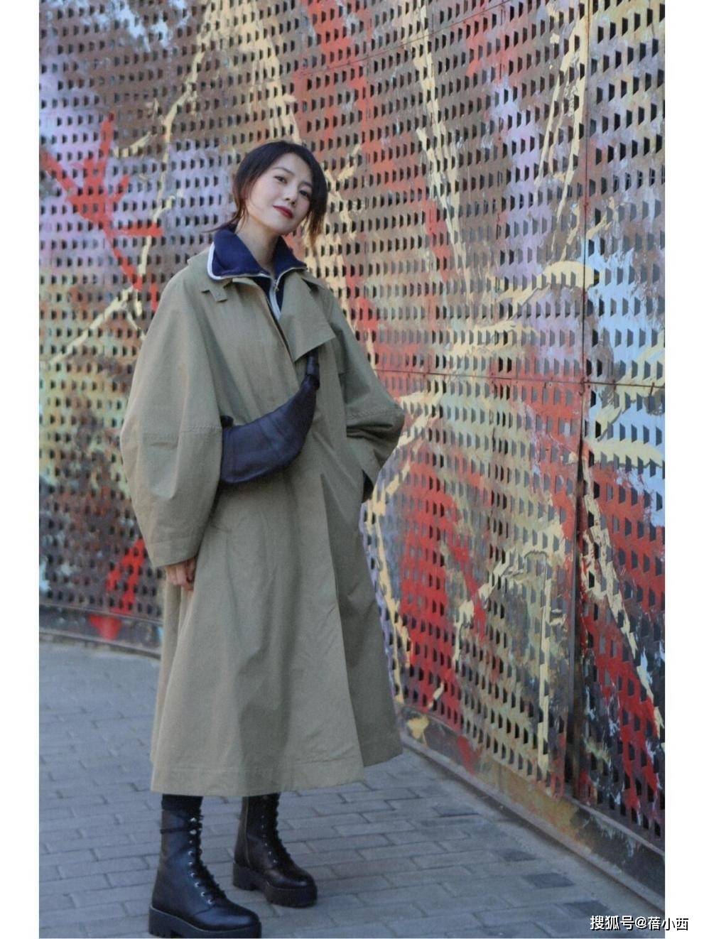 高圆圆的风衣穿搭给人眼前一亮的感觉,45岁看上去像28岁。