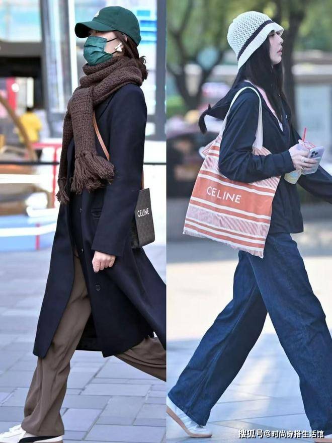 相比之下,“阔腿裤+德训鞋”穿搭则可以利用裤型优势掩盖露肤面积,保暖的同时也可以优化塑形,遮肉更显瘦。