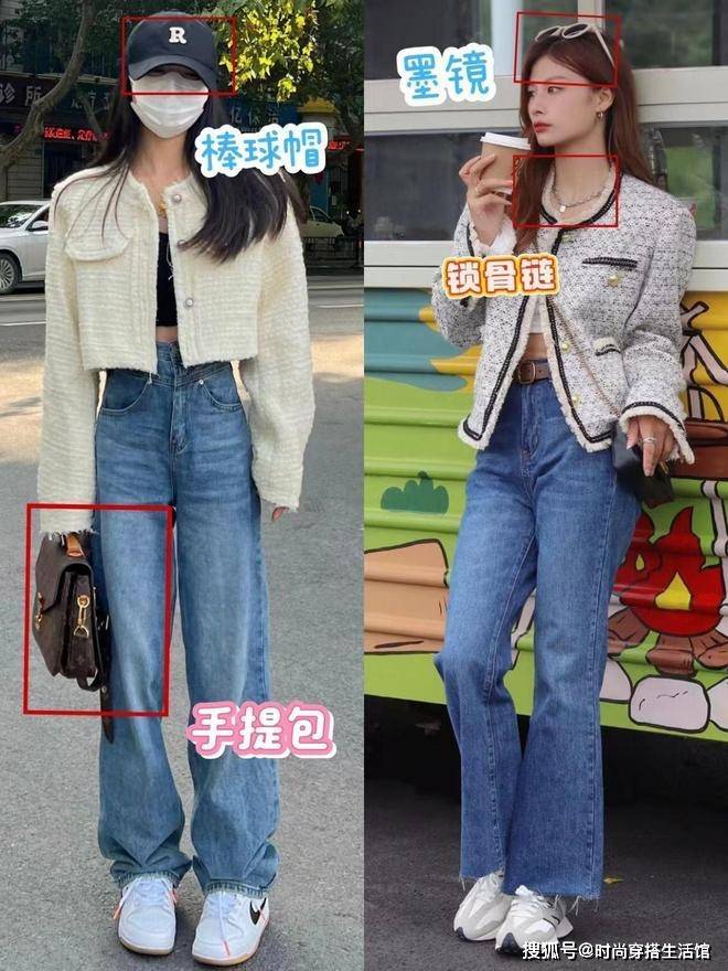 深秋季节想要将“小香风外套”穿出优雅高级感的话,我们除了要选对款式之外,还需要运用正确的搭配方法,比如像是腰线的塑造能够直接影响我们的穿搭比例,而且我们选择的腰线越高,整个造型腿部比例就长一些,那么我们可以选择上衣塞裤腰、上短下长、腰带等方式,借助短小香风外套搭配高腰下装,完美避免了将腰线遮挡住。