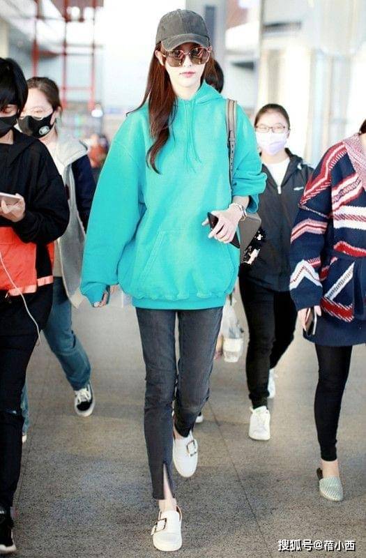 如果你是黄皮肤,可以试试这种湖蓝色卫衣,唐嫣这一件卫衣的颜色选得太妙了,不艳俗还显白,oversize的版型穿起来松松垮垮的,舒服又藏肉,连帽设计带点休闲感,日常出门穿特别自在,实用性很强。