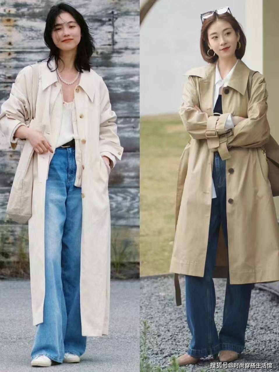 方式一:风衣+牛仔阔腿裤