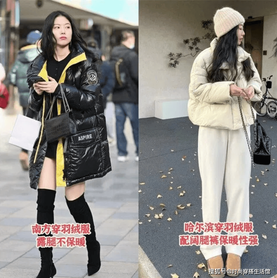 ⑴羽绒服+阔腿裤的保暖性比露腿强太多