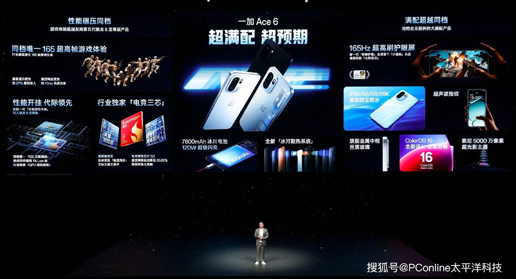 续航层面,一加 Ace 6的「7800mAh超大冰川电池+120W超级闪充+旁路供电+局间补电」的超级续航组合,提供了前所未有的续航安全感和补能效率,让用户能够彻底告别电量焦虑。此外,一加 Ace 6还拥有IP66/68/69/69K满级防尘防水、超声波指纹解锁、金属中框等等旗舰级配置,旗舰体验处处做到极致。