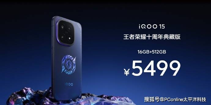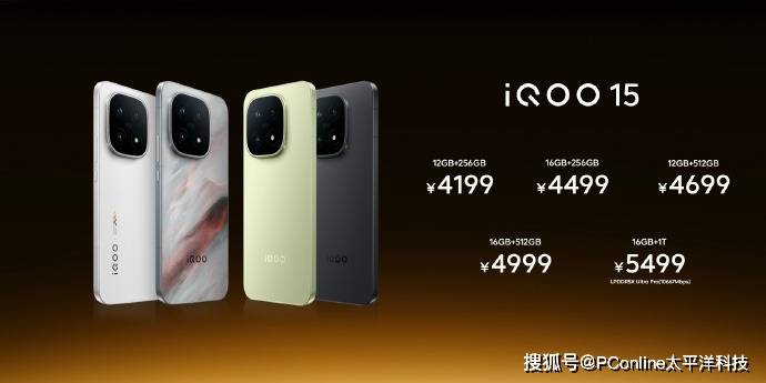 iQOO 15提供五个版本选择:12GB+256GB售价4199元,16GB+256GB售价4499元,12GB+512GB售价4699元,16GB+512GB售价4999元,16GB+1TB售价5499元,王者荣耀十周年典藏版售价5499元。
