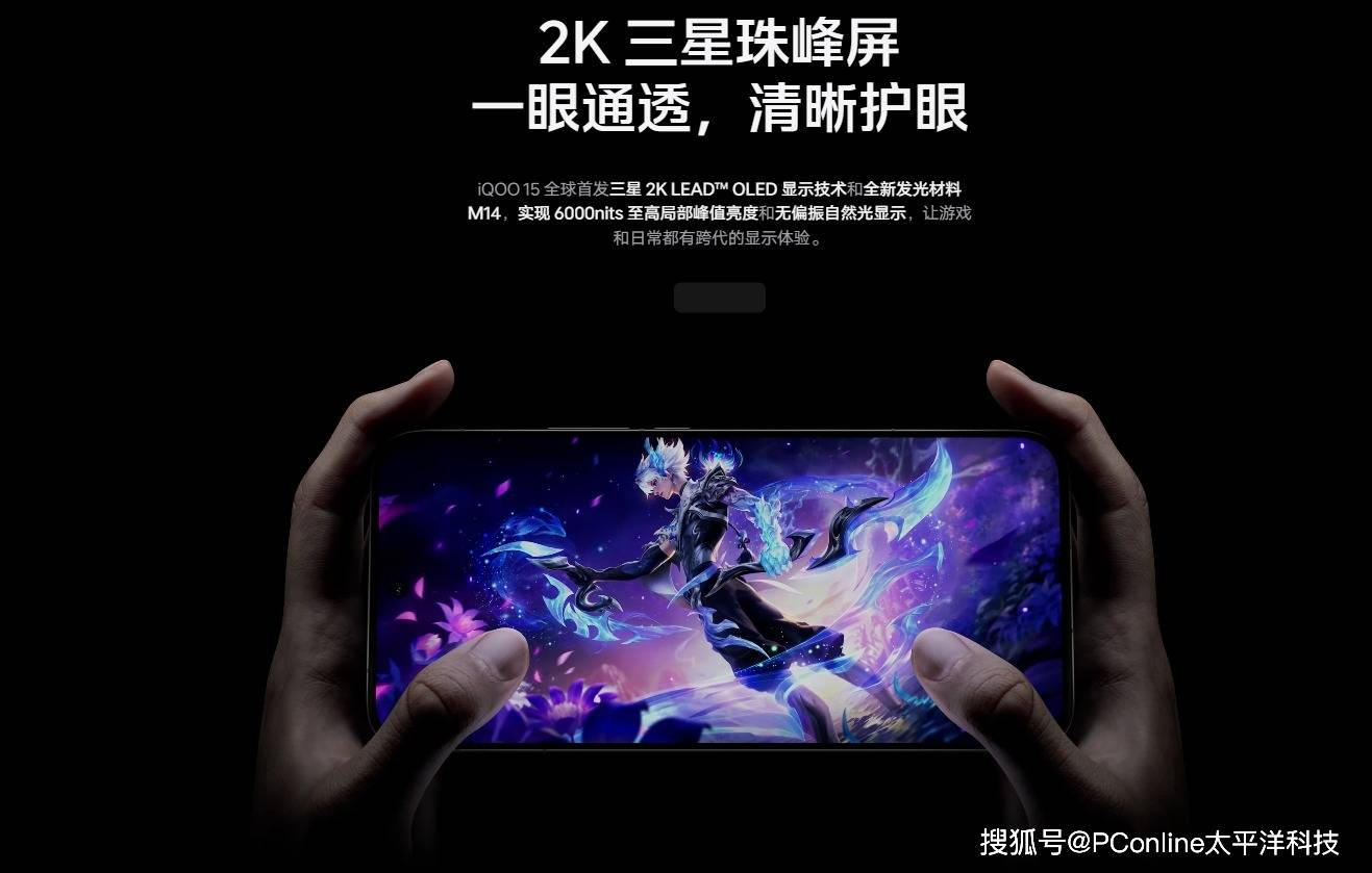 屏幕方面,iQOO 15搭载全球首发2K LEAD OLED与M14发光材料的三星珠峰屏,峰值亮度2600nits,局部峰值亮度6000nits,支持144Hz刷新率与3200Hz瞬时触控采样率,实现指哪打哪的操作体验。2K屏幕结合三光敏全域感光、硬件级护眼技术及悦目护眼2.0,通透、高亮且护眼,获得莱茵无偏振显示与游戏护眼双认证。