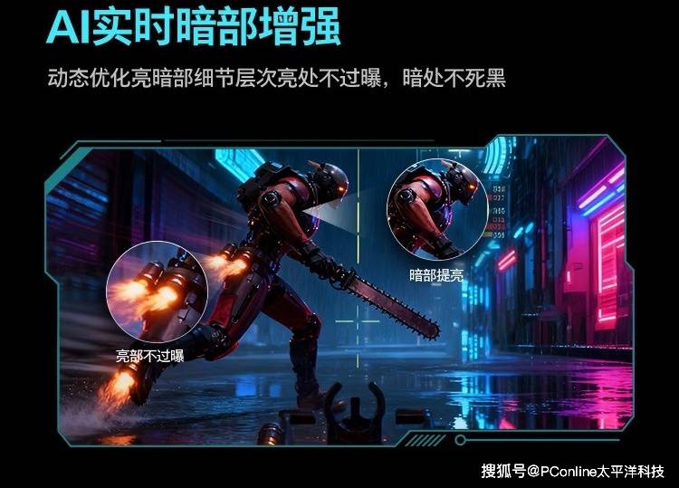 此外,450nit的峰值亮度与DisplayHDR 400认证,也为AI实时暗部增强功能提供了足够的动态范围。同时,软硬件协同的低蓝光技术和不闪屏技术也并未缺席,为长时间游戏提供了眼部舒适度保障。
