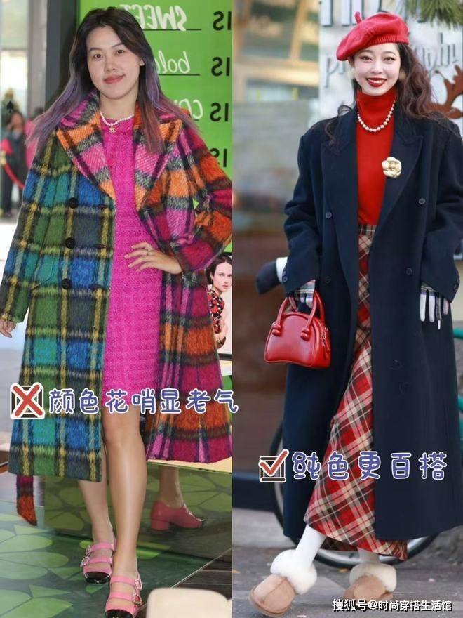 像是市面上流行的很多彩色大衣,模特和街拍博主穿在身上非常的时髦和显白,但对于普通女性或者是肤色比较黄的人来说穿在身上就很容易暴露肤色,毕竟这些膨胀感的彩色大衣瞬间就会让我们显胖一圈,尤其是像玫红色、橘色、土黄色等等,这些太鲜艳的彩色很容易产生艳俗感,容易穿出一种“精致土”的感觉。