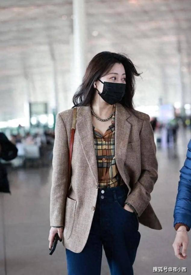 西装与衬衫是绝配,男女生都喜欢这么搭。殷桃里边穿的衬衣是格子款,小格子分布均匀没有杂乱感,更重要的是,格子颜色不单一,与外套形成鲜明对比,少了沉闷感。衬衫衣摆常常被塞进裤腰,因为很多女生想借此拉长腿部线条。