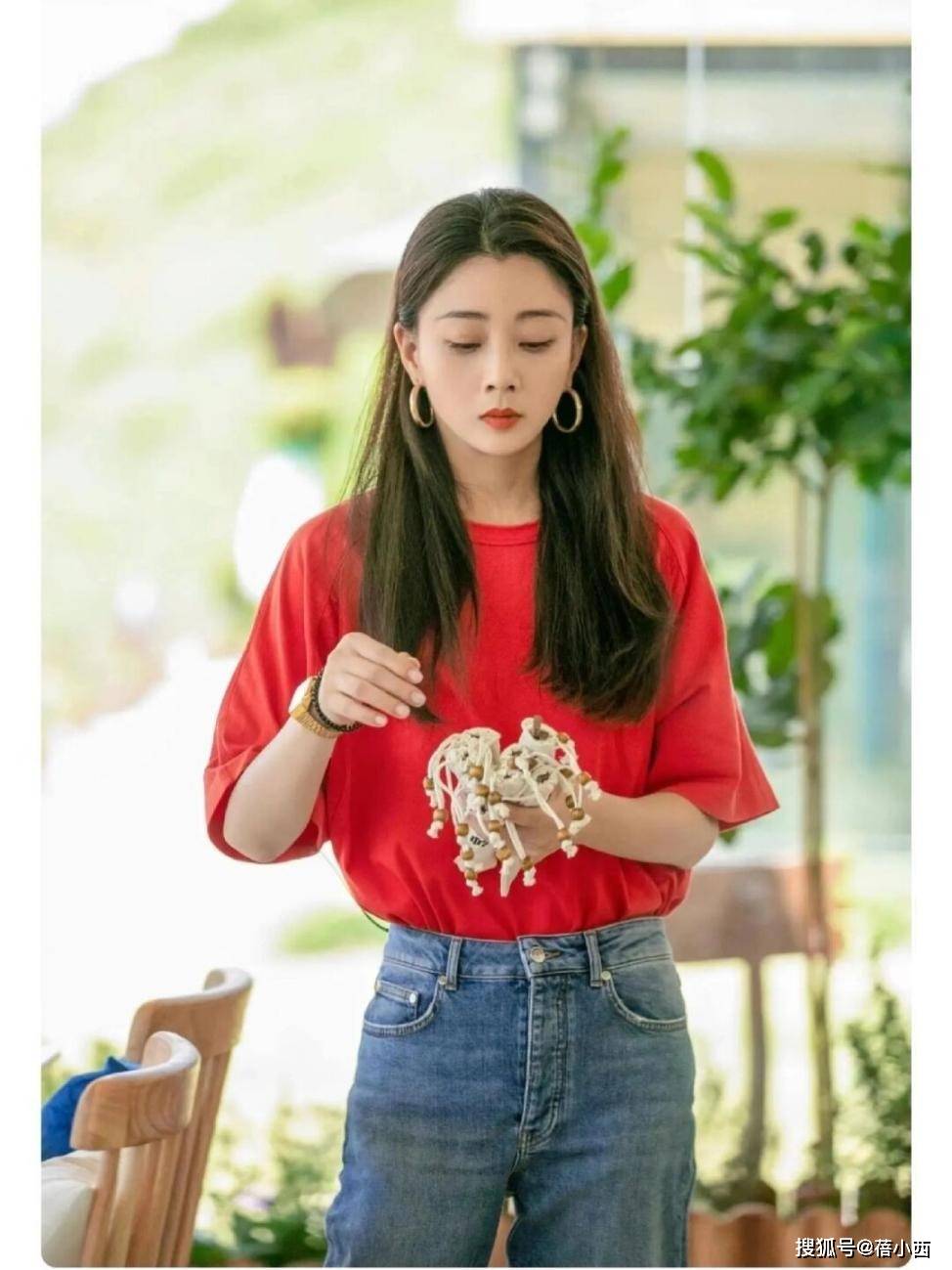 很多女生买上衣时,喜欢绕开大红色,因为此色过于鲜艳。红衣一出现,就能成为焦点般存在。红色短袖既可以单穿也可叠穿,前者出现在夏季,后者初秋很多人这么搭。