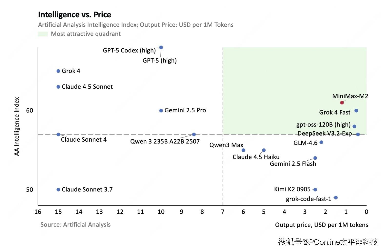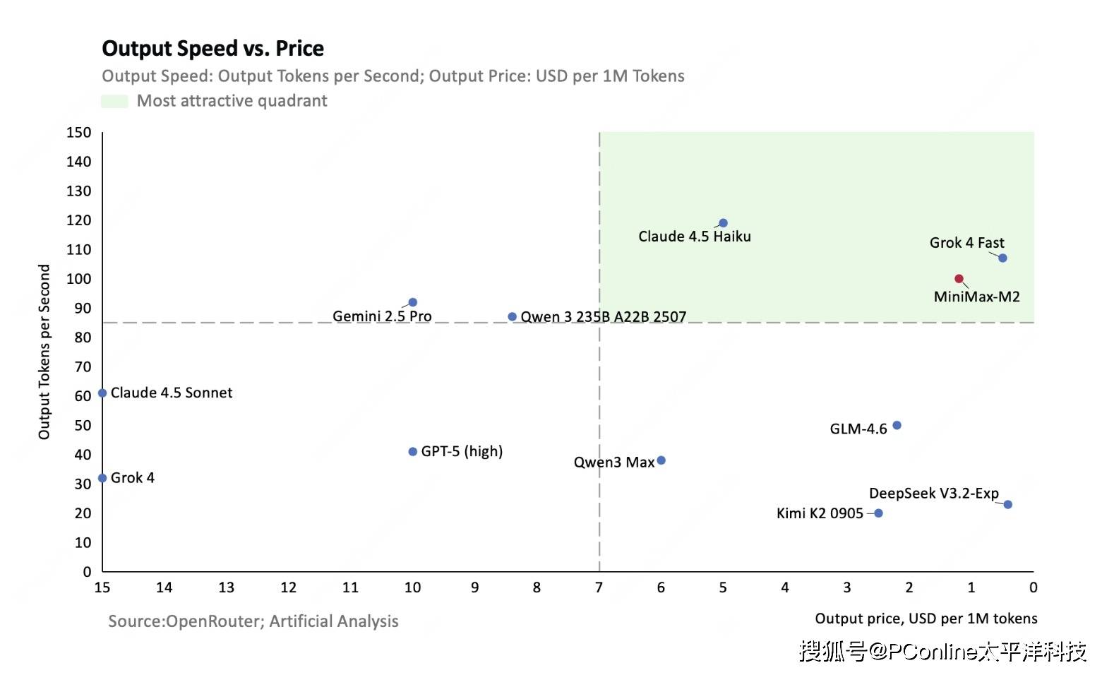 MiniMax M2的研发初衷,正是为了攻克这一难题,在三者之间找到最佳平衡点,从而推动Agent时代的智能普惠。MiniMax把模型的API价格定在每百万Token输入0.3美金/2.1元人民币,以及输出1.2美金/8.4元,同时在线上提供TPS(每秒输出Token数)在100左右的推理服务(还在快速提升)。