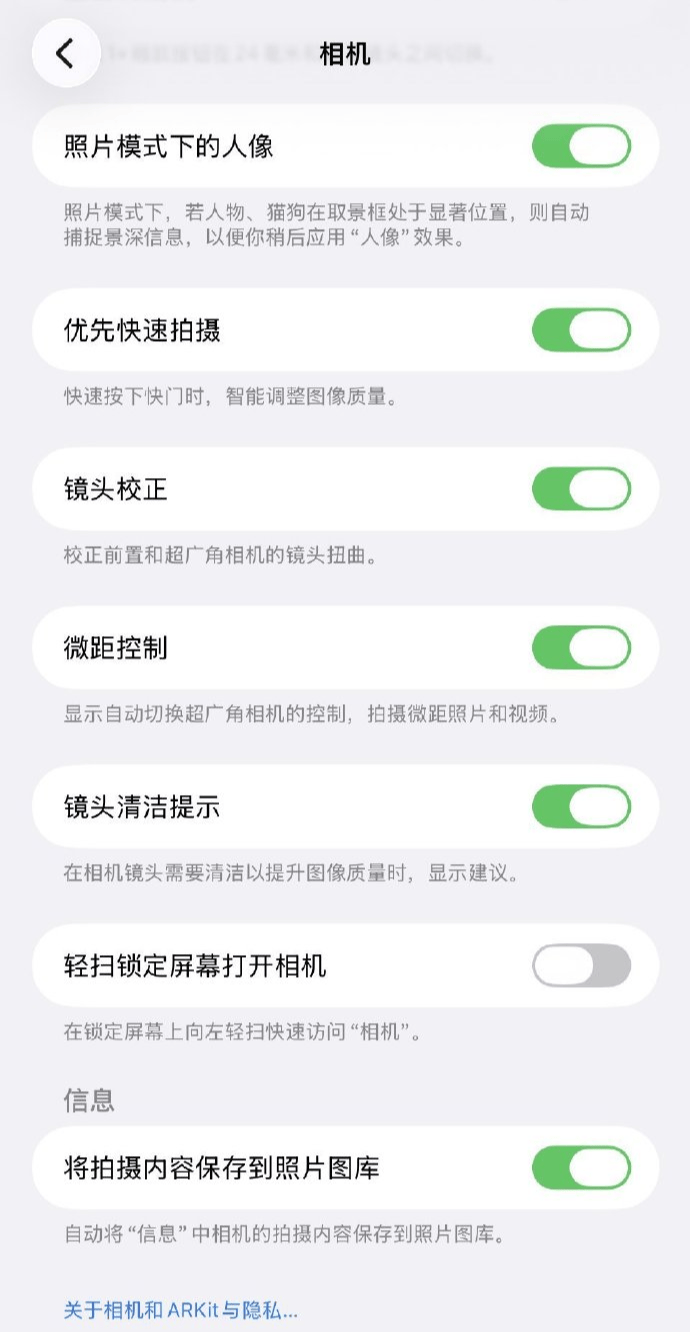 最受关注的变化是,此前在锁屏界面向左滑动即可快速启动相机的功能,现在支持手动关闭。用户可在“设置-相机”中找到“轻扫锁定屏幕打开相机”选项并将其关闭,从而有效避免误触。