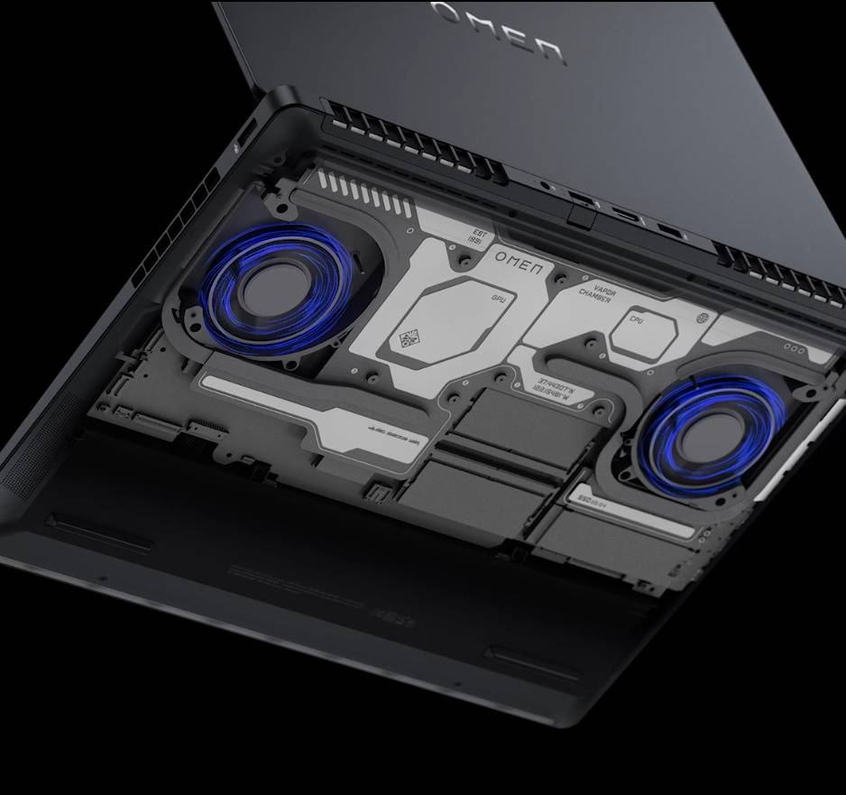 目前的游戏本市场同质化严重,核心的CPU和GPU本质均为AMD/NVIDIA/Intel所提供,只要是正经的一二线厂商均能拿到最新一代的芯片,想要在市面上脱颖而出,核心配置这种“你有我也有”的东西已经不能引起消费者的关注和喜好了,则要在其余方面发力开卷,就例如OMEN暗影精灵MAX,全新的酷凉风暴MAX采用均热板作为主要的热量传导介质,相比于常见的热管,大面积的均热板拥有更快速和更高效的热交换能力,再加上两个热管还可辅助机身内部供电等区域的散热,散热模组可轻松解热双核心250W的功耗。