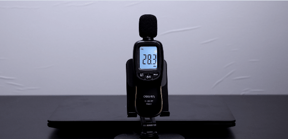 风扇噪音使用分贝仪在环境噪音29分贝左右的室内进行测试,分贝仪摆放在距离屏幕约为25cm左右的位置,在烤机30分钟后分贝仪显示环境噪音上升至54.5~55分贝。