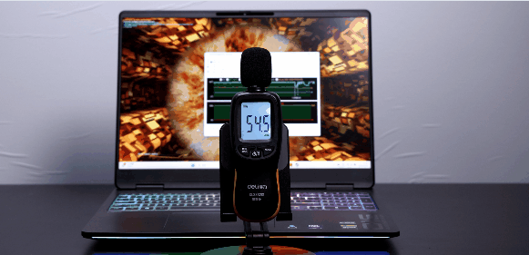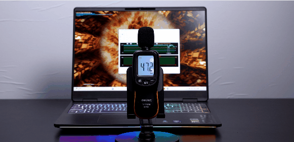 OMEN暗影精灵MAX的风扇噪音并没有尖锐刺耳声,而且考虑到这是一台250W功耗释放的机型,在我们的测试环境中,OMEN暗影精灵MAX的满载噪声抑制表现不错,两颗高质量风扇在这里起了不小的作用,高速运转下保证了无高频噪音。