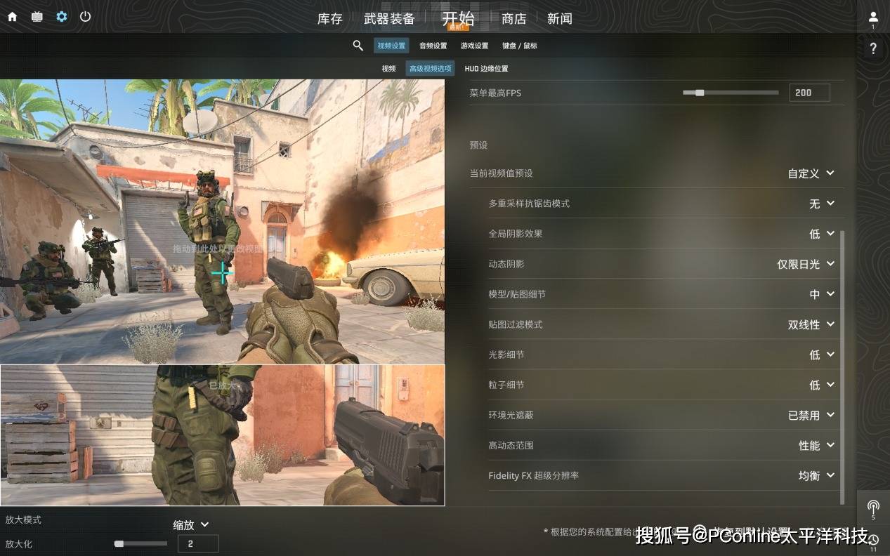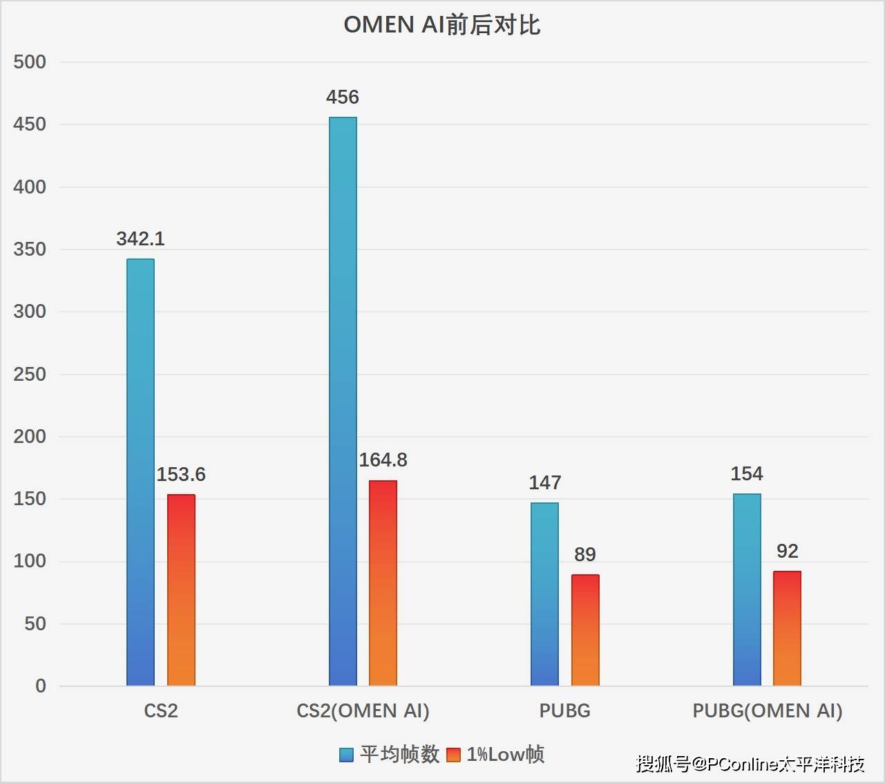 CS2与PUBG采用与上面测试时相同的画质设置,在OMEN Gaming Hub开启OMEN AI选项后根据不同游戏自动调节游戏画面设置,可以看到仅降低了一点点的画质,换来了更高的帧数表现。