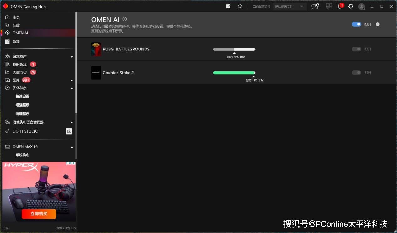 提到本代的OMEN暗影精灵,那么不得不提到的就是OMEN AI了,OMEN AI是OMEN暗影精灵系列的全新功能,这一功能利用OMEN AI大模型针对于硬件以及游戏进行AI个性化设置。根据中国惠普官网中对于OMEN AI的介绍:惠普游戏中心能够通过性能数据训练OMEN AI,也就是说AI模型持续学习不同状态下游戏的性能表现,从而提升对应的游戏帧数,OMEN AI现已上架: