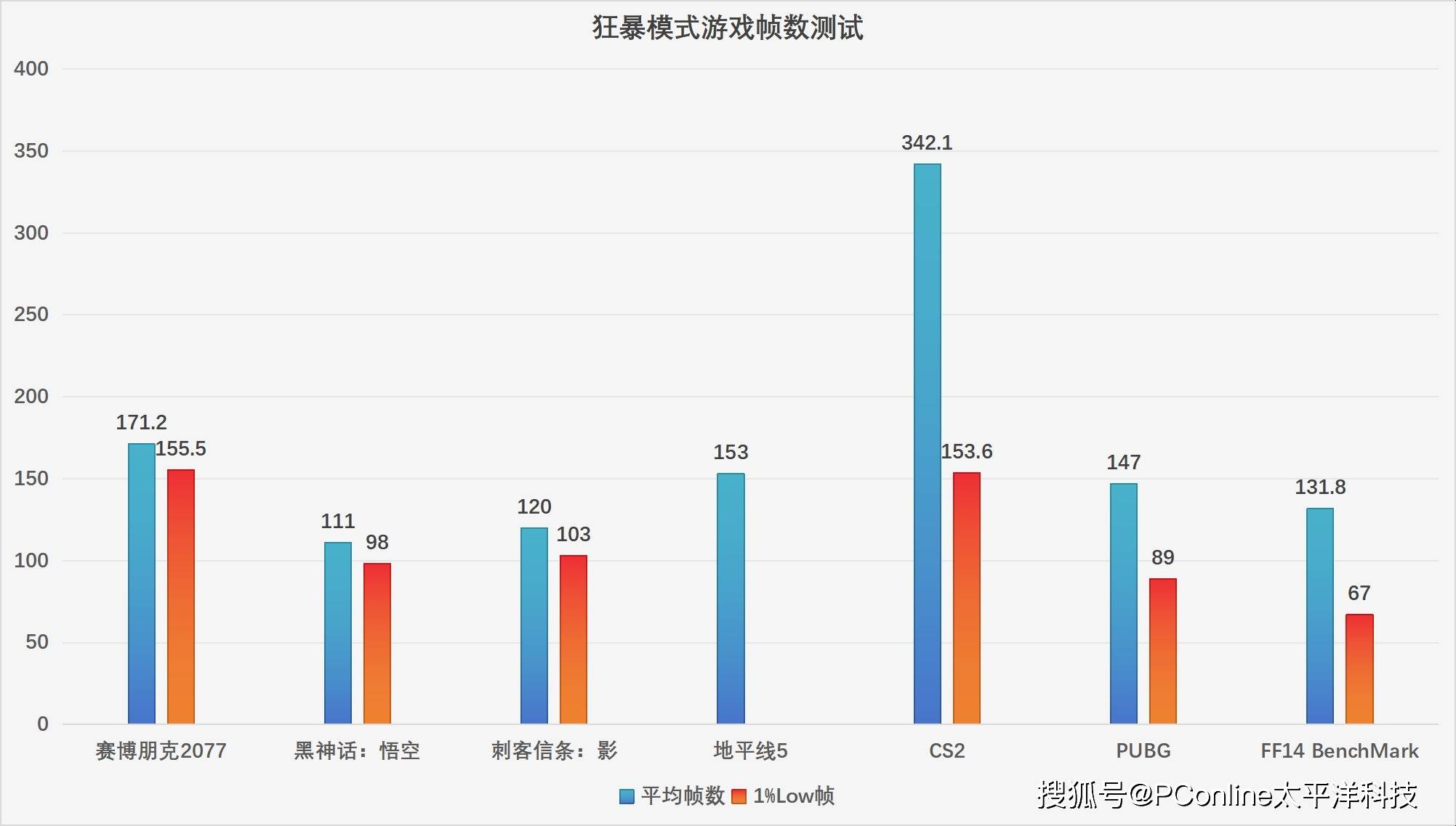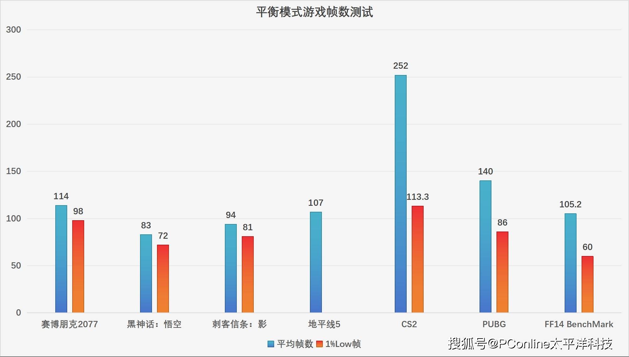 那么在这平衡模式下,其游戏性能如何?大型3A还能高画质流畅游玩吗?网游帧数会一落千丈吗?游戏帧数会和功耗那样直接削减一半多吗?我们同样的测试了狂暴模式下测试过的游戏,并且画质设置、分辨率等都保持完全一样,来看下这些游戏在平衡模式下的表现如何: