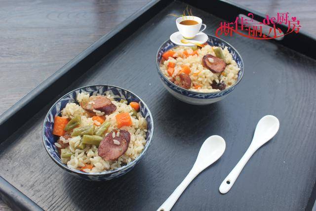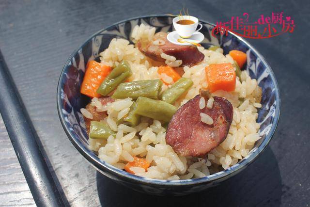 焖饭的做法没有局限性,且食材的包容性很强, 根据自己喜欢的食材,将不同的肉类与各种色泽艳丽、水分含量少的各种食材,荤素搭配制作出色香味俱全的焖饭,令人食欲大增补充能量时也满足了口腹之欲。焖饭这么做,饭菜一锅出,简单易做营养全,每次煮一大锅全部吃光光。下面就给大家分享一道营养又美味的”腊肠焖饭“的做法,吃得好还简单省事,适合忙碌的上班族,不看亏大了。