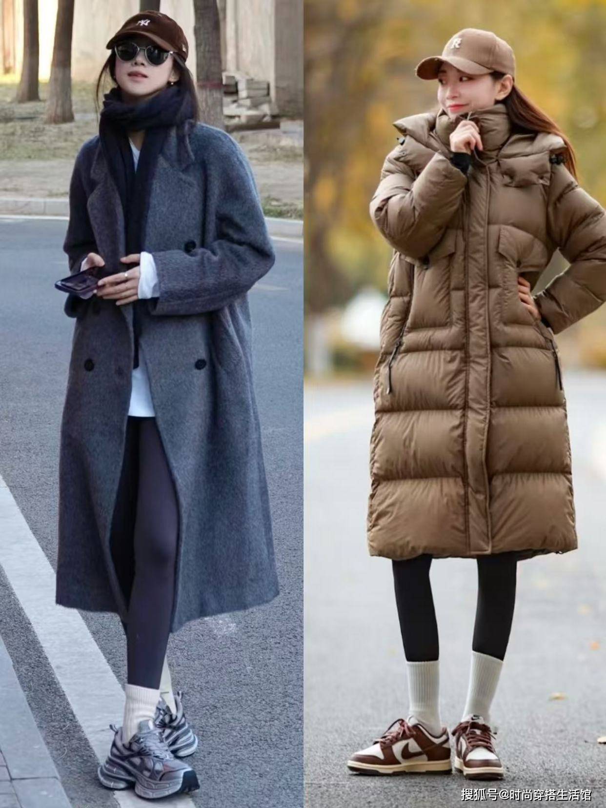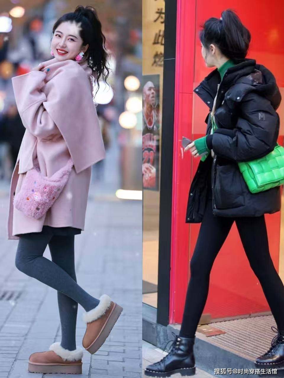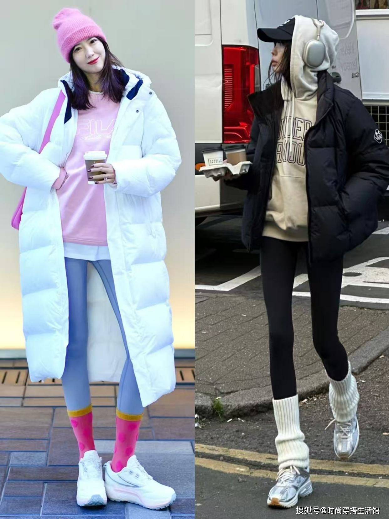 其次就是羽绒服是宽松的版型,如果下半身还选择搭配宽松的裤子,那么整个造型就很容易出现臃肿和显胖的视觉效果,反之我们选择搭配鲨鱼裤瞬间就可以显瘦显腿长。