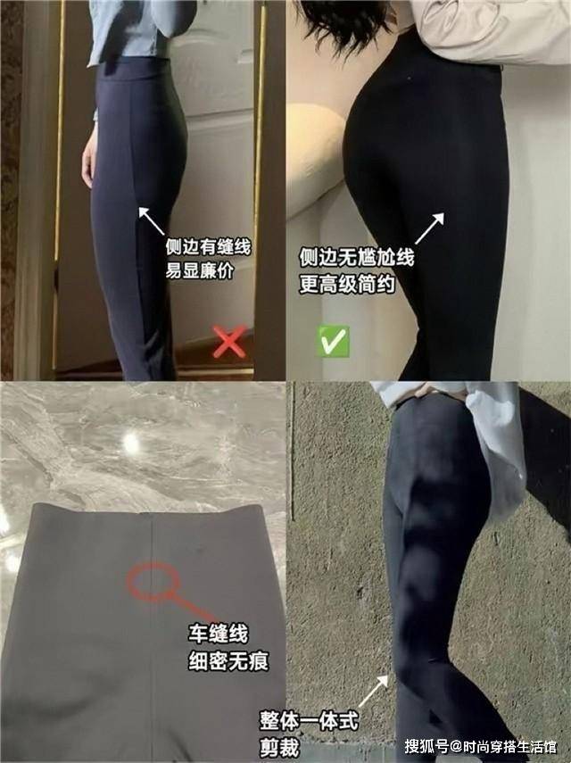此外我们还要注意侧边的缝线,像是常见的侧边有缝线的鲨鱼裤会让你容易出现褶皱和变形的廉价感,反之我们选择侧边无缝线的面料,轻松就可以修饰腿部线条,更加显高显腿长。