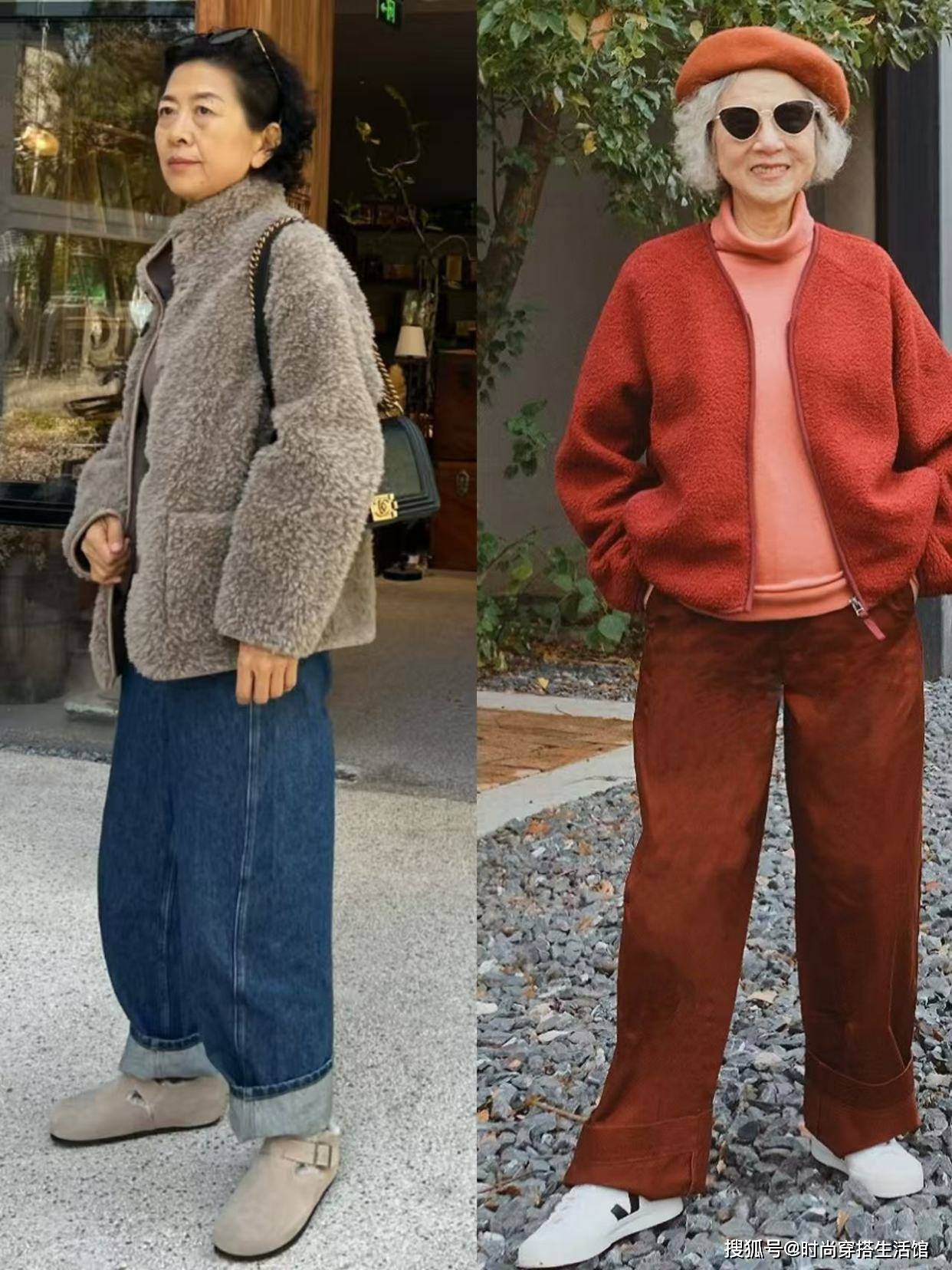 对于大龄女性来说选择穿羽绒服又臃肿膨胀,棉服又显得普通和老气,那么我们试试这时髦保暖的摇粒绒外套,其实摇粒绒的材质和羊羔毛的面料温柔软糯,瞬间就能够治愈人心,而且摇粒绒外套非常的时髦和高级,面料的话尽量选择小颗粒的面料,主要是因为大颗粒面料穿在身上容易出现膨胀感,会出现臃肿和显胖的现象。