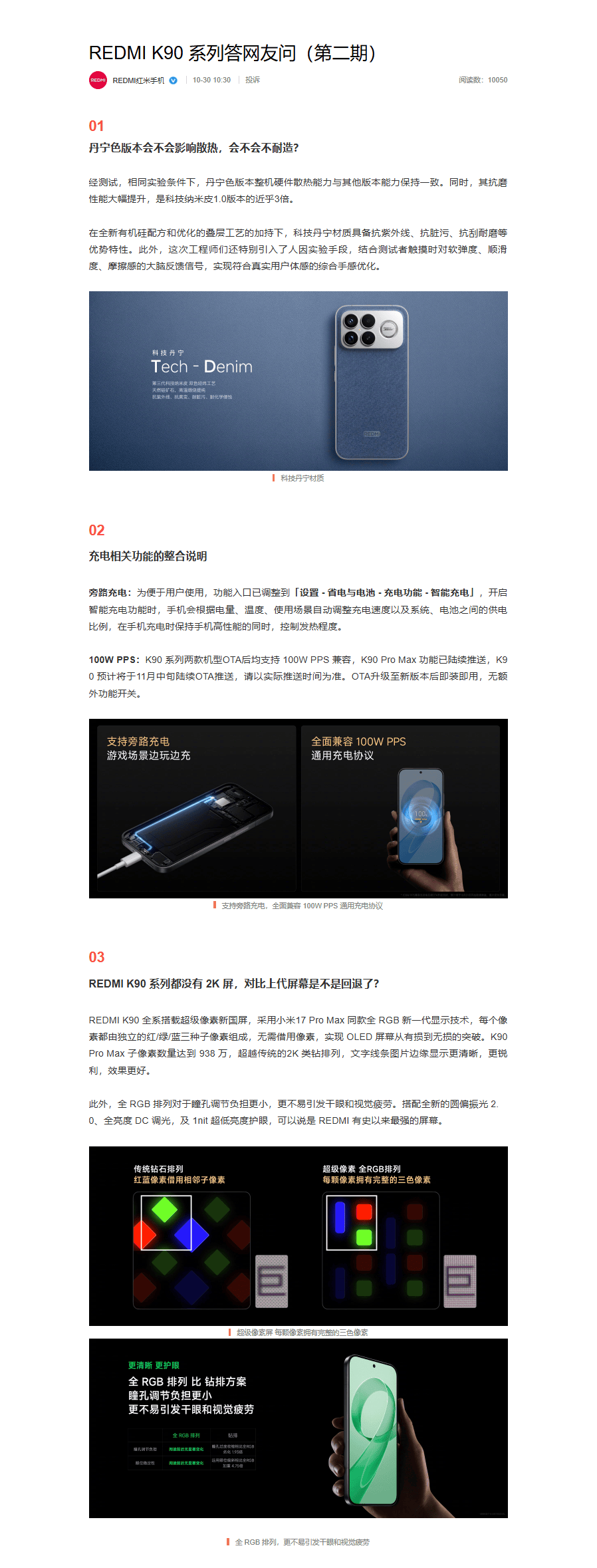 此外,官方还针对 K90 系列的相机和充电相关功能的整合说明、是否有推荐的配件、屏幕对比上代是否回退等问题做出解答。