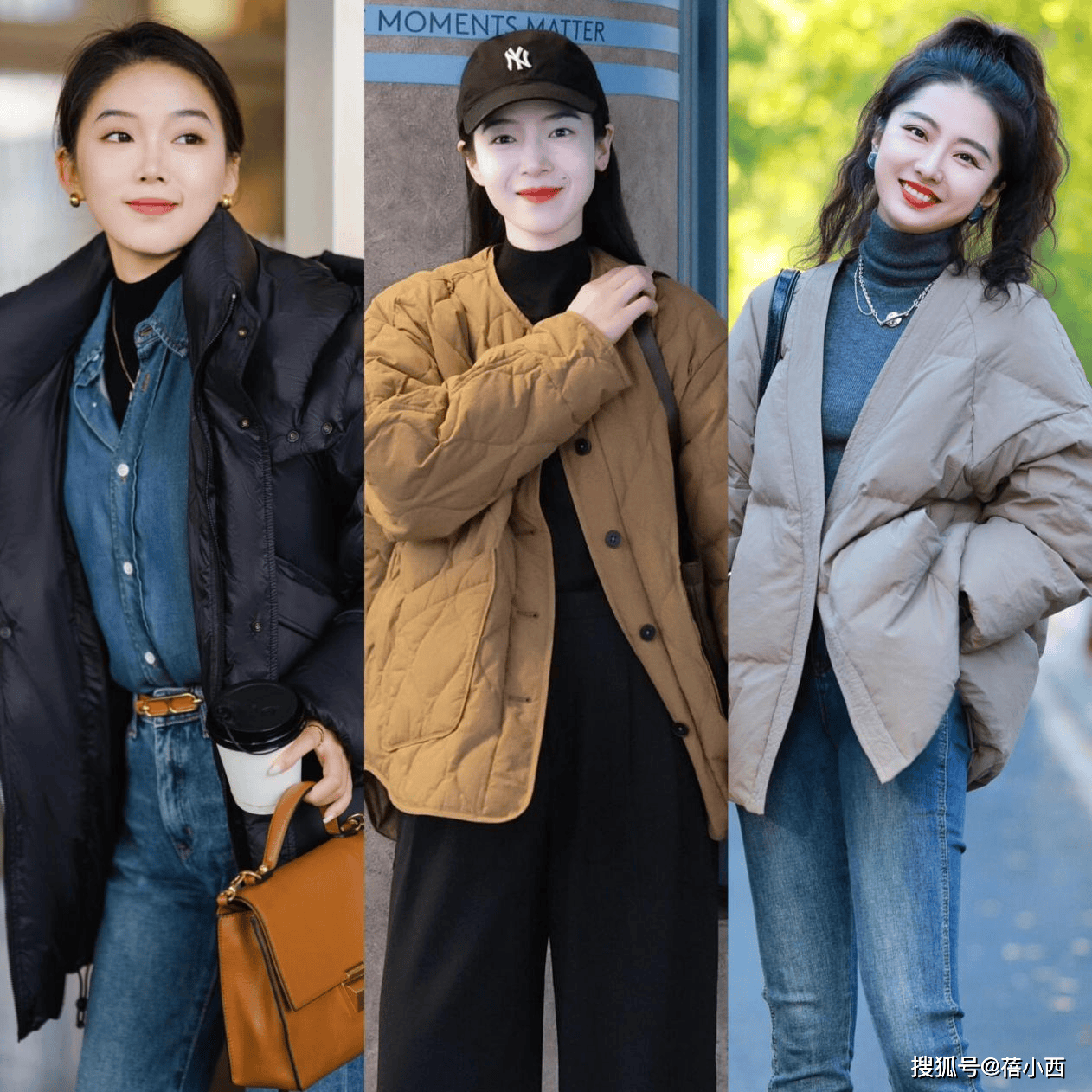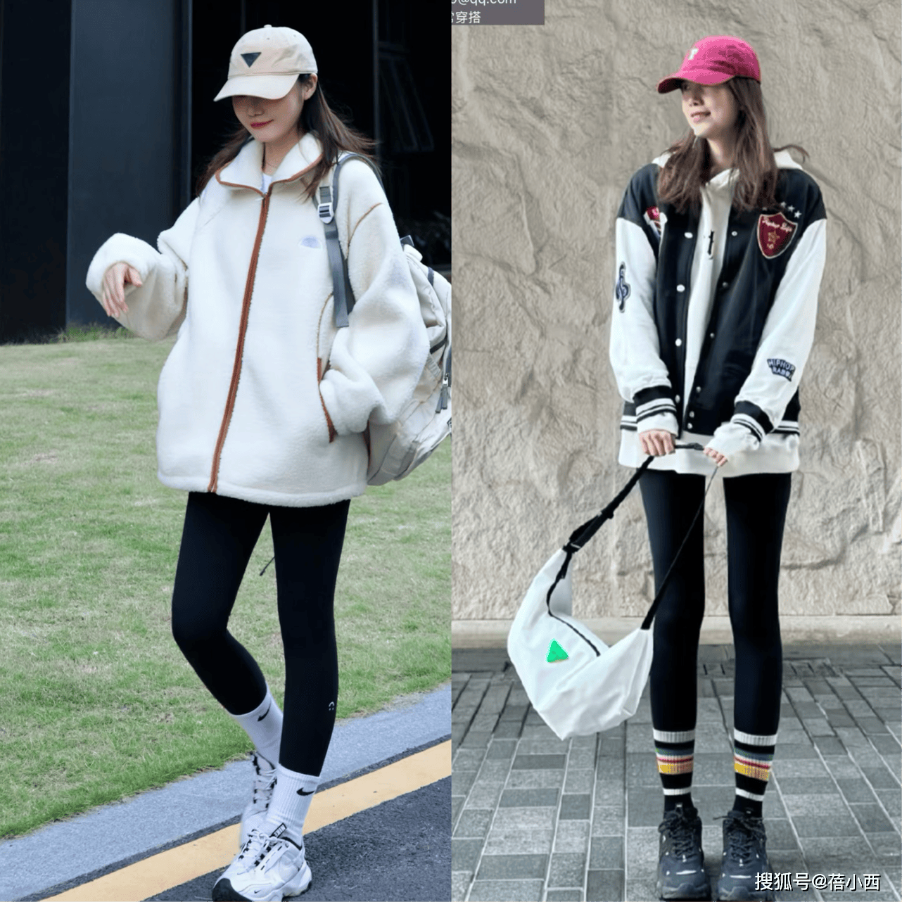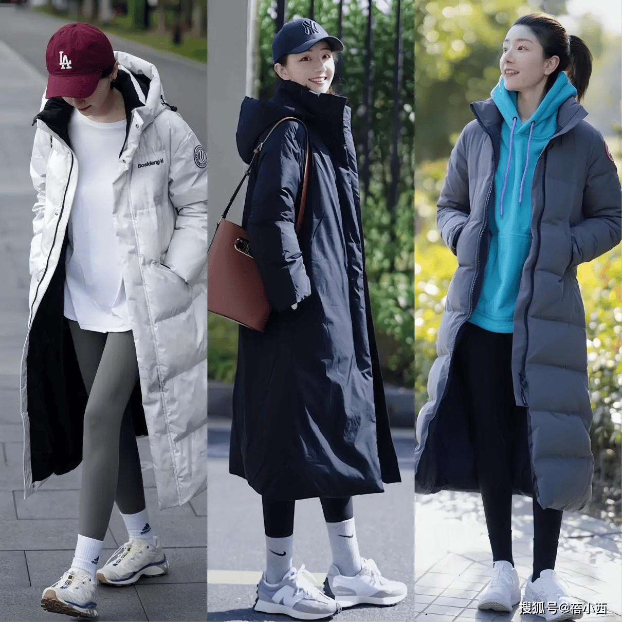 如果你很怕冷,一定得用棉服搭配鲨鱼裤,上半身穿一件厚实保暖的棉服,下半身搭配一条修身的鲨鱼裤,可以形成松紧对比,视觉上更显腿细,保暖效果也可以兼顾。