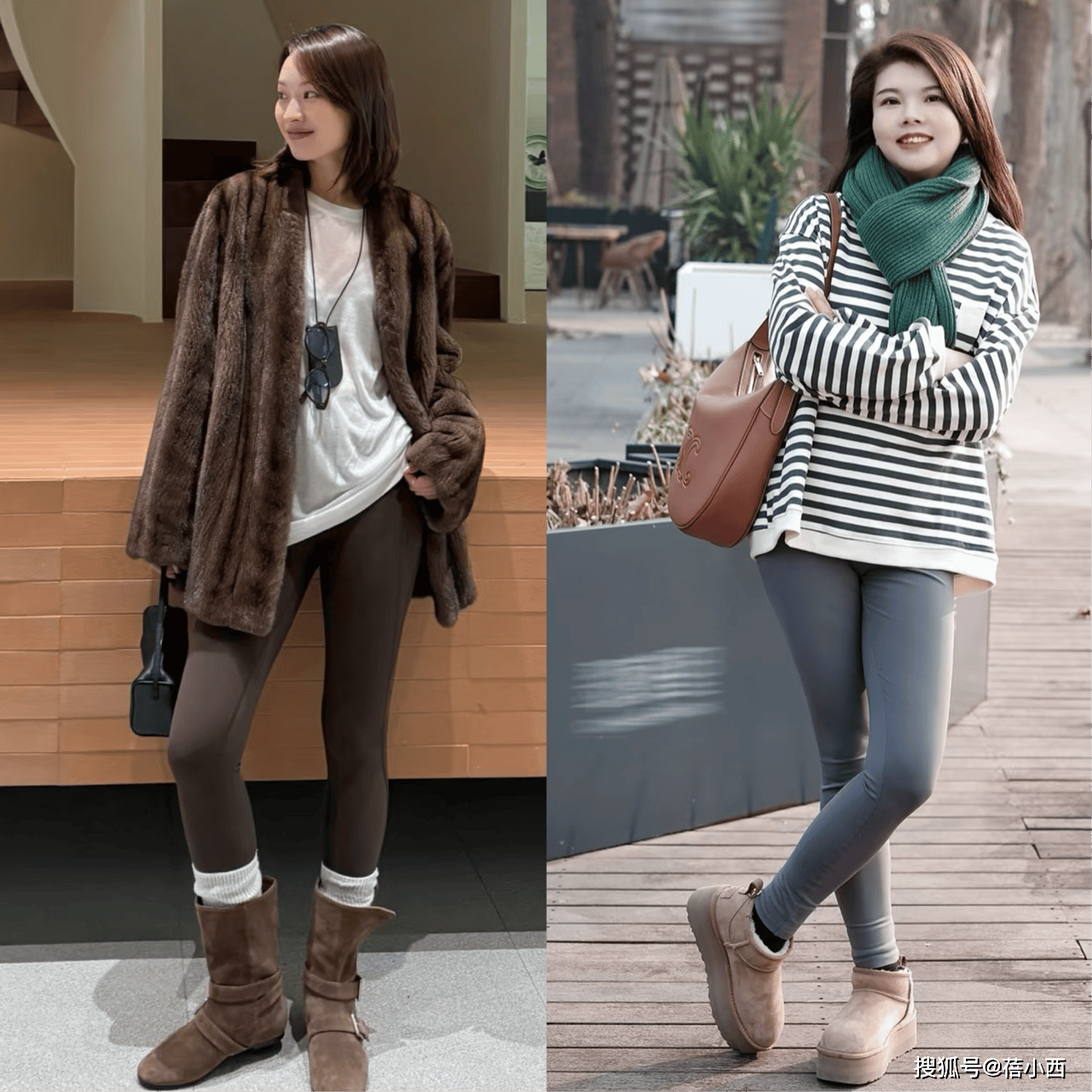 今年还有一种比较流行的穿搭,那就是用堆堆袜搭配鲨鱼裤,单穿鲨鱼裤的时候,姐妹们可能会害怕自己的腿型不好看,这个时候搭配堆堆袜,可以起到修饰腿型的效果,而且保暖性也更好哦。