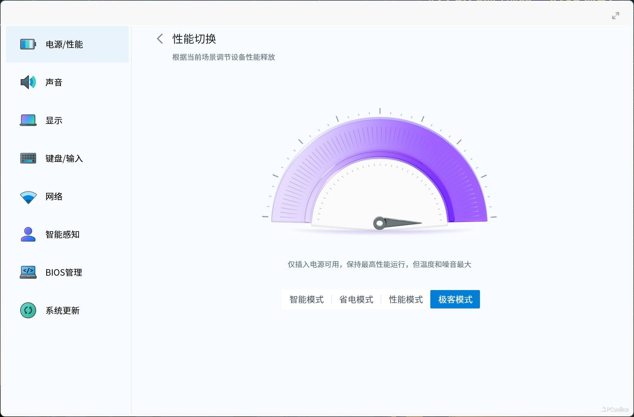 打开联想百应就会发现,英特尔酷睿Ultra版本除了三个常规模式外,多出了一个“极客模式”,AMD锐龙版本只有除此之外的三个模式。