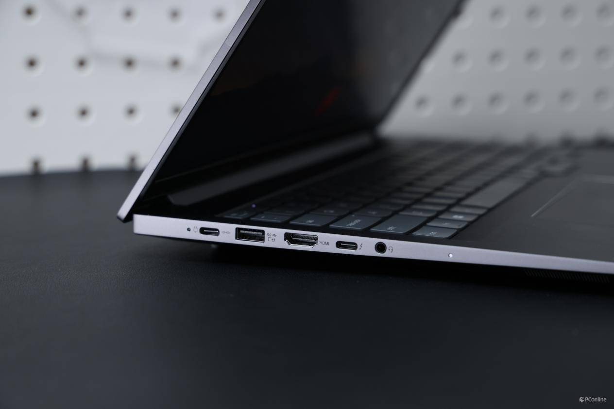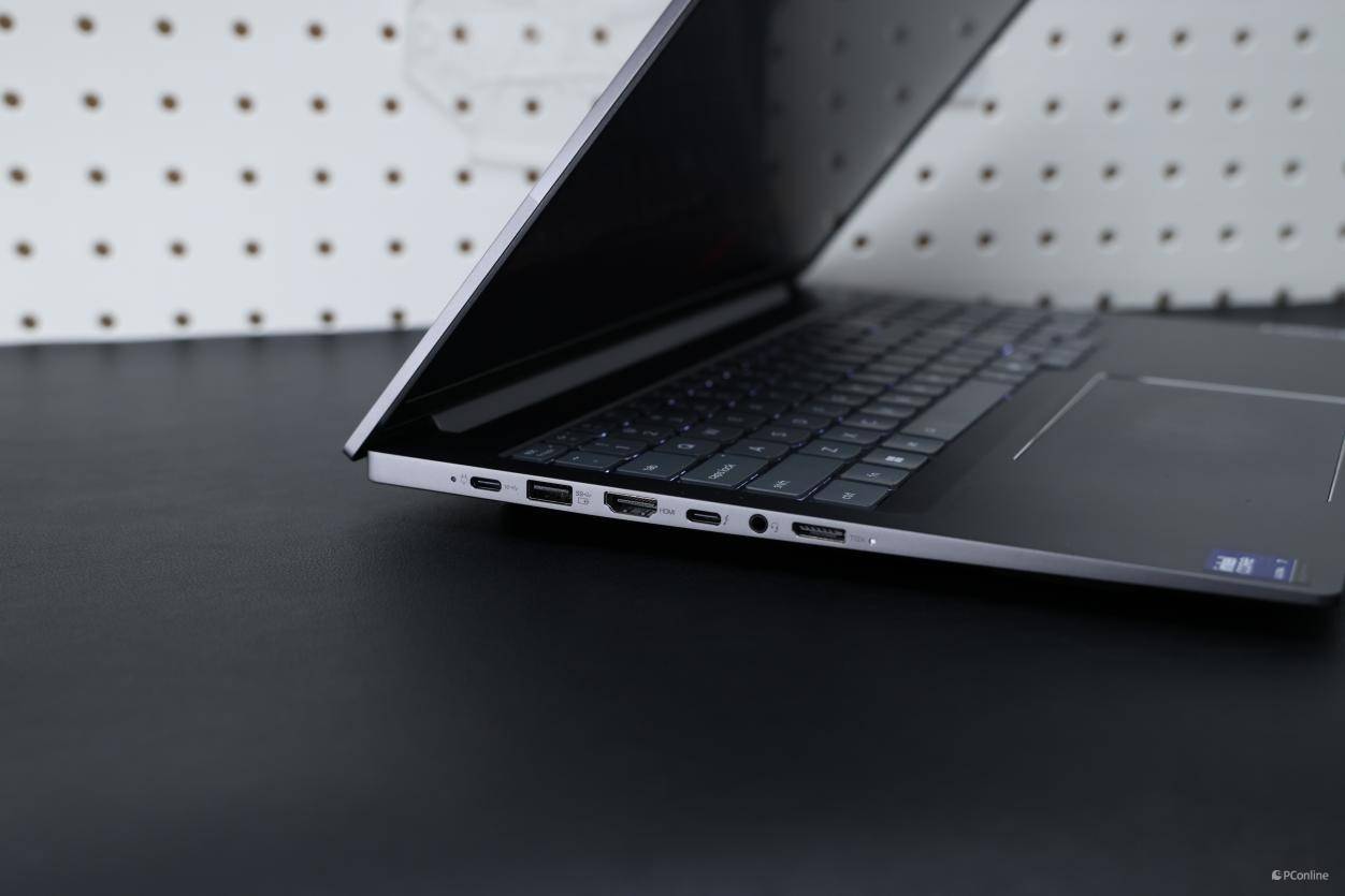 酷睿Ultra机型共配备1个隐藏式USB 2.0 Type-A接口、2个USB 3.2 Gen1 Type-A接口、1个全功能USB 3.2 Gen2 Type-C接口、1个雷电4接口、1个HDMI 2.1 48Gbps接口、1个SD读卡器、1个RJ45网线接口、1个3.5mm音频接口、1个TGX显卡扩展坞接口。