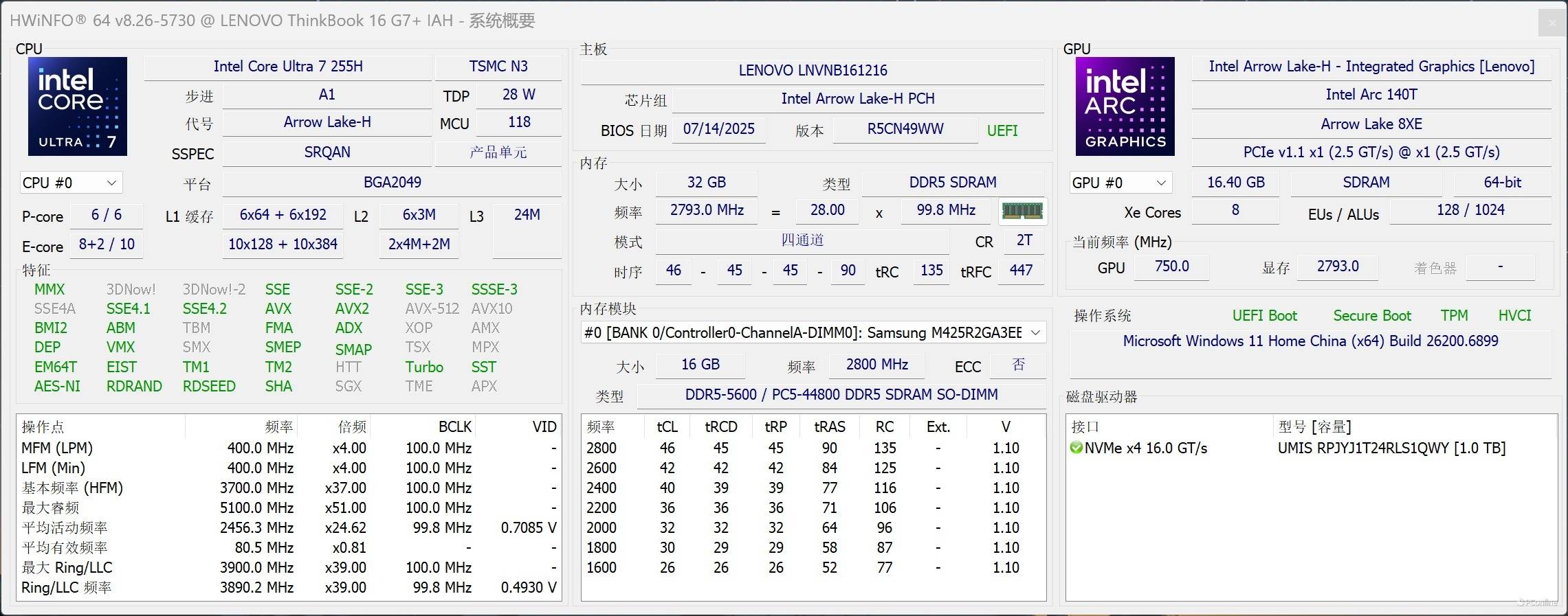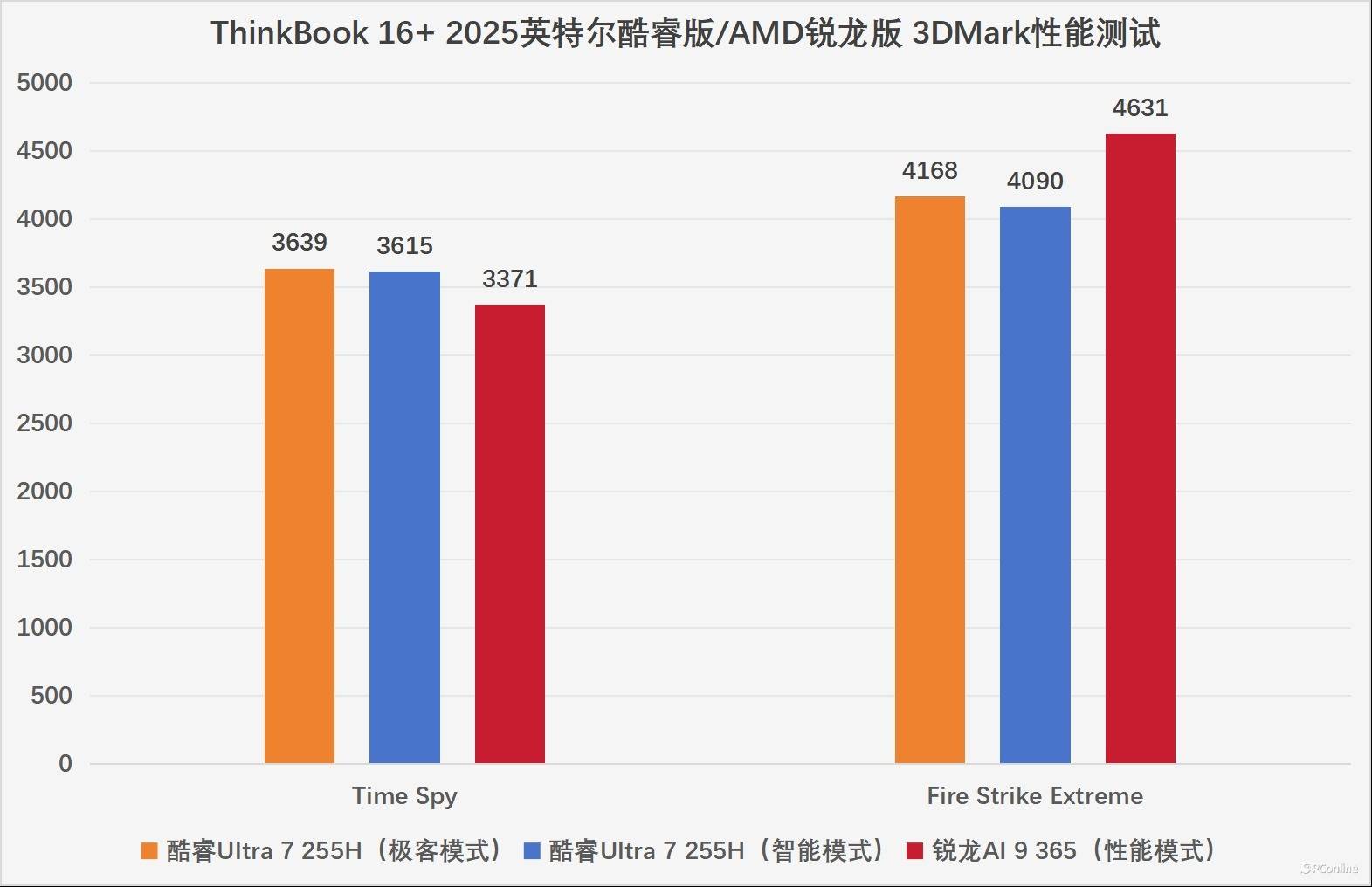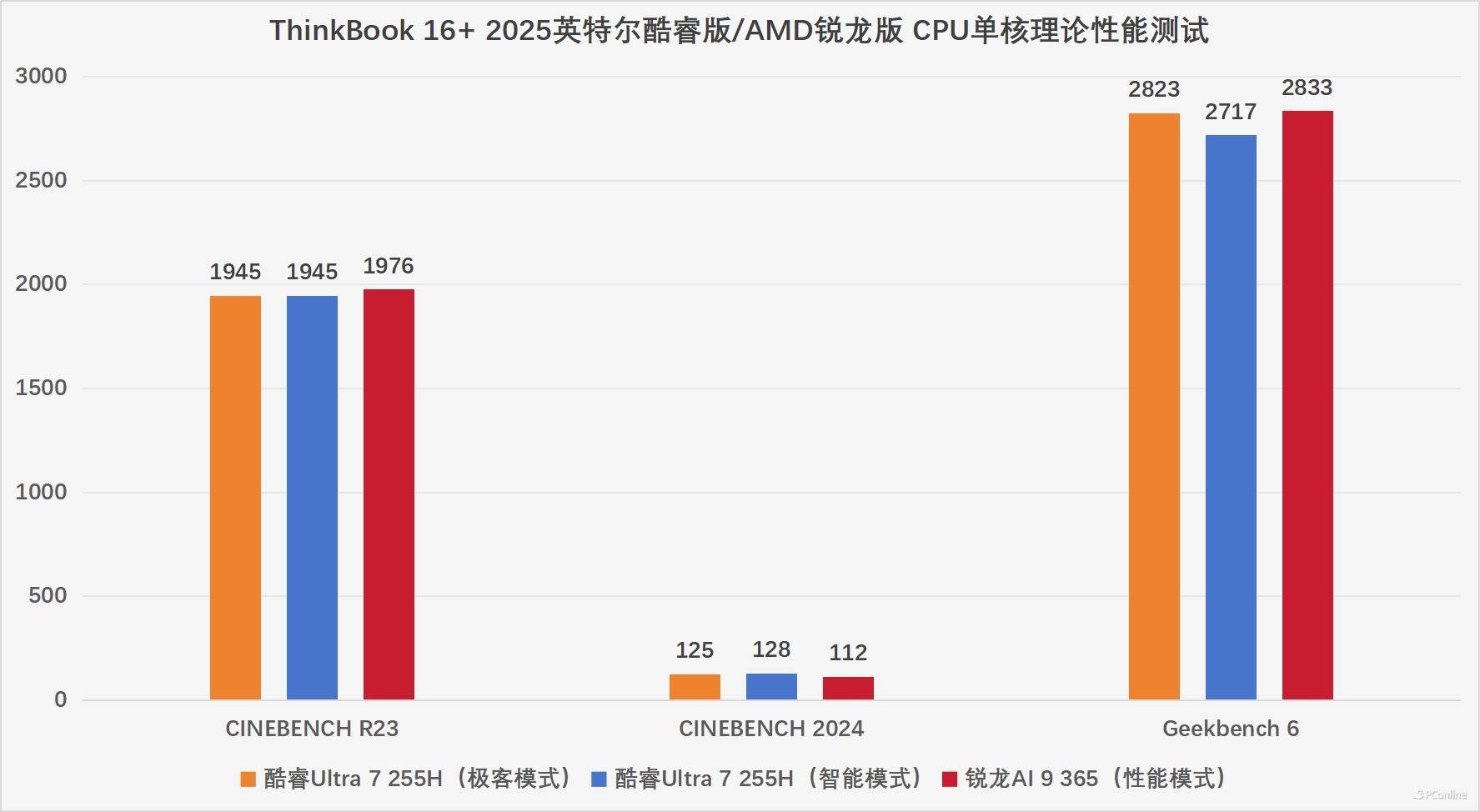 在开始正式性能测试前,我们先抛去CPU方面的差异大致看了下两款机型周边配置上的差异,可以明显的感觉到,价格更便宜一点的酷睿Ultra 7 255H版ThinkBook 16+ 2025在周边配置上更优、理论成本更高,导致这方面的原因个人猜测可能有二,一是AMD锐龙AI 9 365芯片成本可能就明显高于酷睿Ultra 7 255H;二是比如内存扩展性、性能调校、屏幕、电源等方面,AMD锐龙版完全可以做到和酷睿版本的持平,这并非难事,酷睿版本的配置领先就体现出了英特尔在笔记本电脑市场中稳固的市场地位使其在OEM厂商内部拥有更重的话语权。