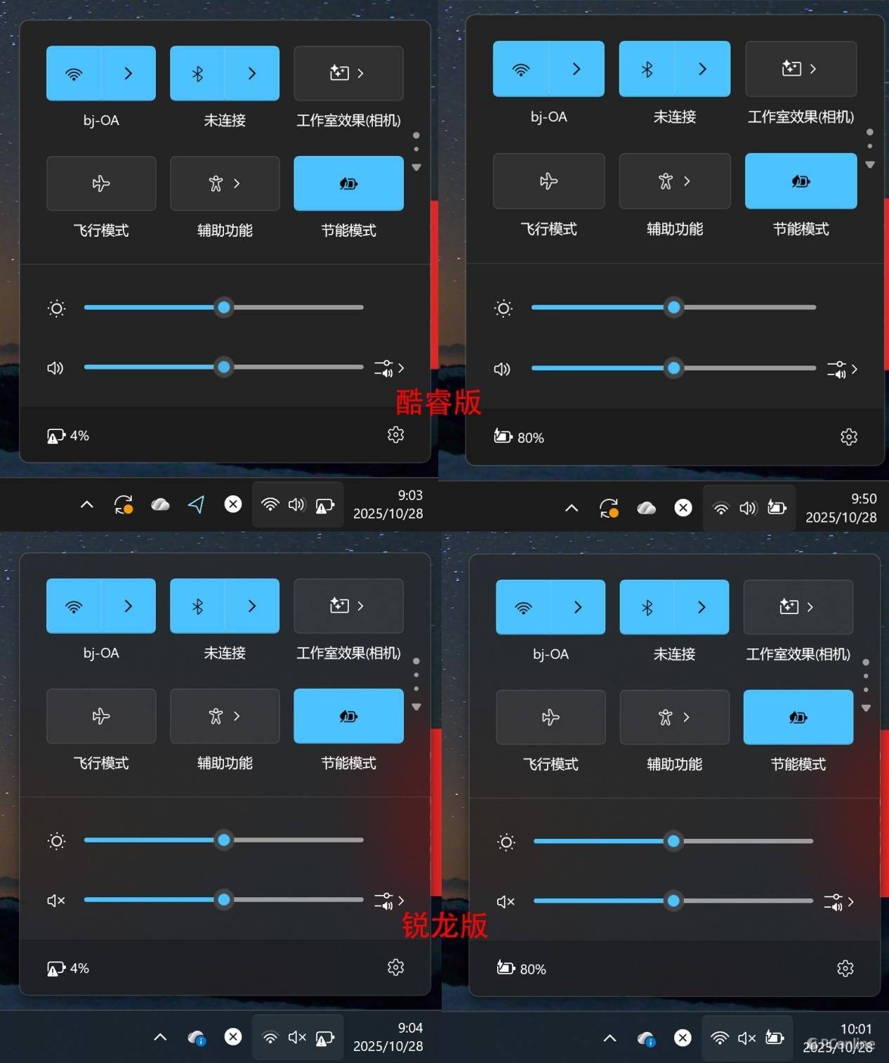同款机型、同款模具下,理论上解热上限应该是一致的,但是两款机型的性能调校不尽相同,甚至在性能模式上,AMD锐龙版本还少一项。