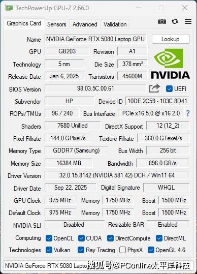 GPU:NVIDIA GeForce RTX 5080 Laptop GPU,Driver Vision:581.42