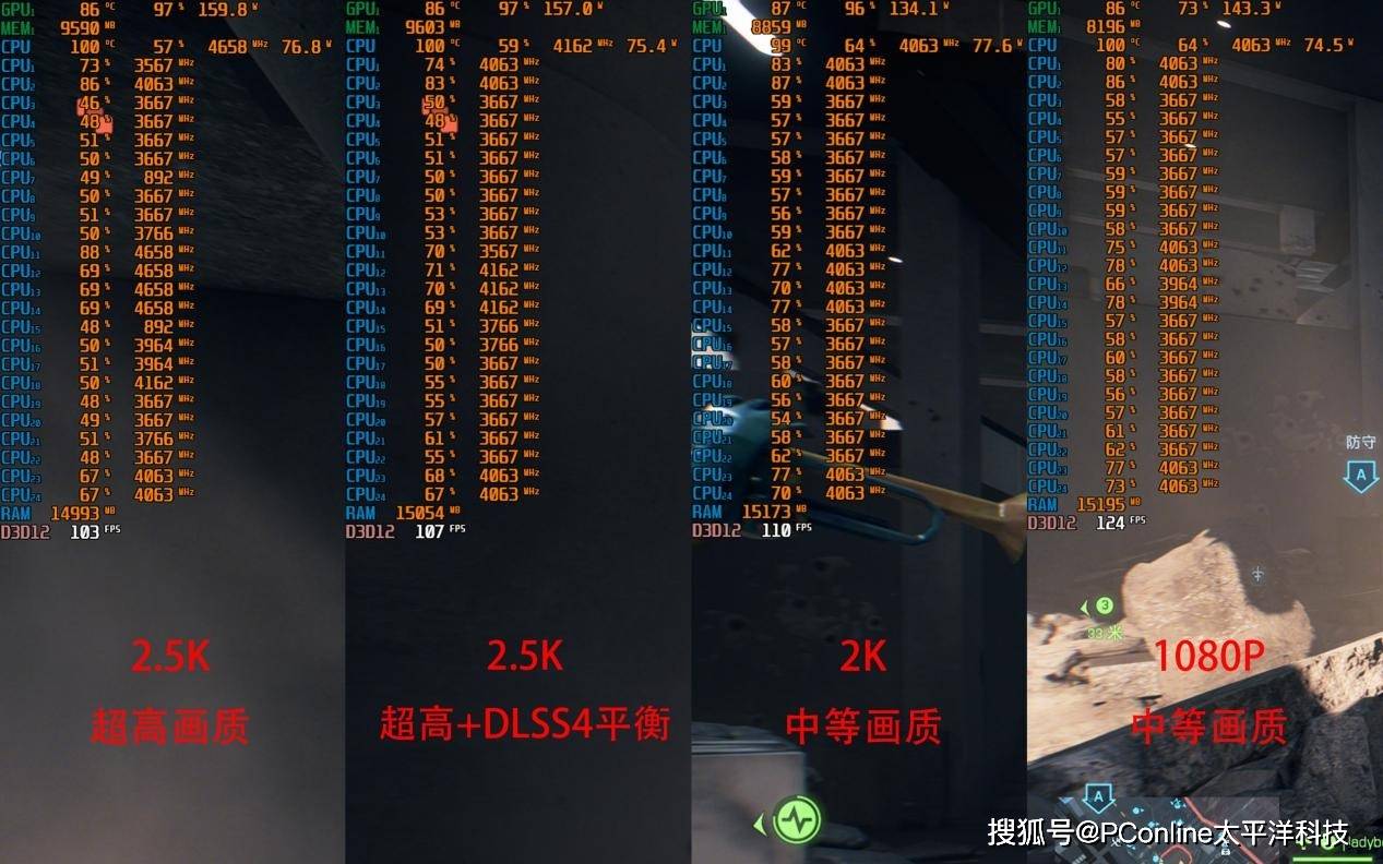 CPU在这类大场景多人对战游戏中往往更多的对帧数起到决定性作用,我们可以看到,实际上,我测试中的5种画质设置下,各画质之间的帧数并没有被拉的很大,尤其是当对比2K+超高画质以及1080P+中等画质时,两个画质之间的帧数相差并没有想象中的那么大,说明CPU确实在战地6中更容易造成性能瓶颈。